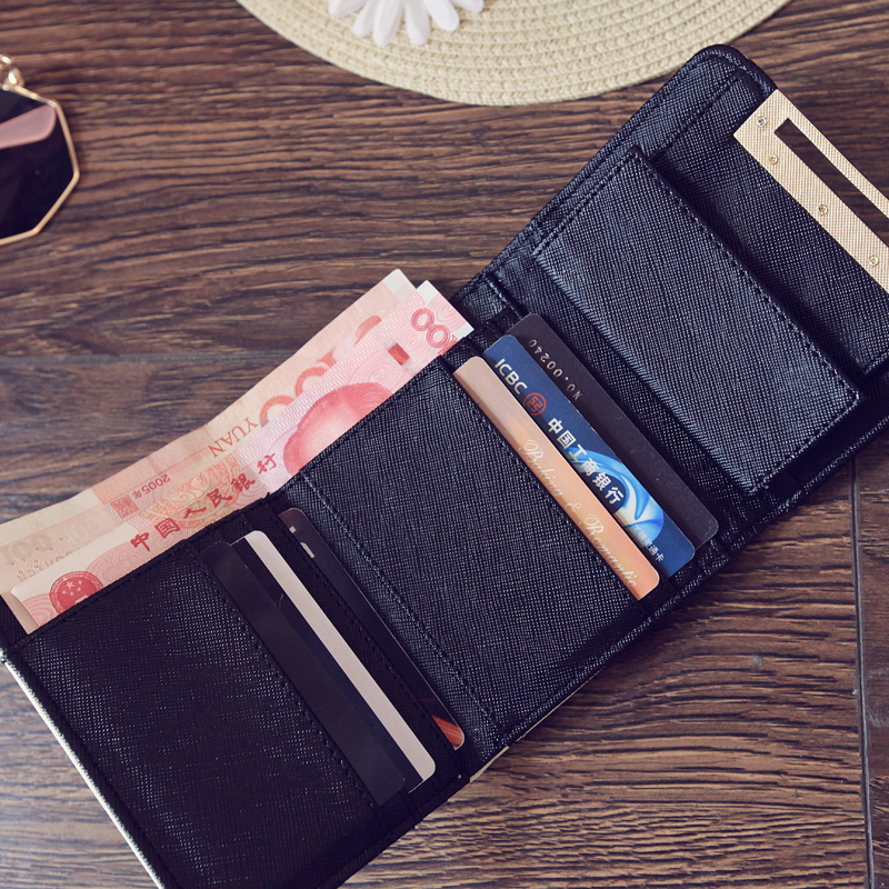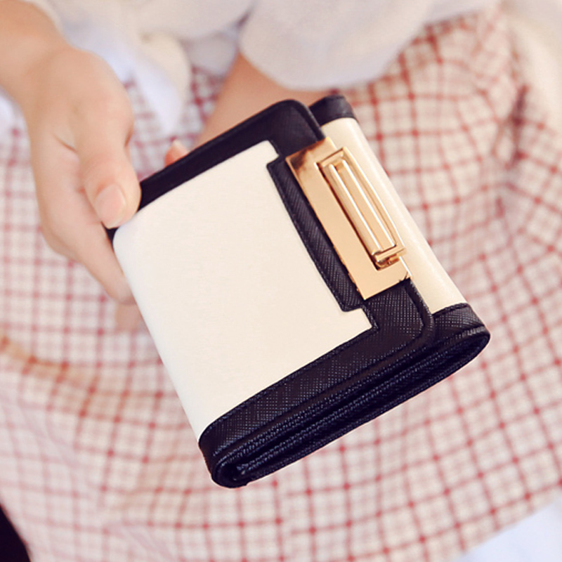 / 日韓女士撞色短款三折錢包 新款簡約時尚鎖扣百搭手拿零錢包