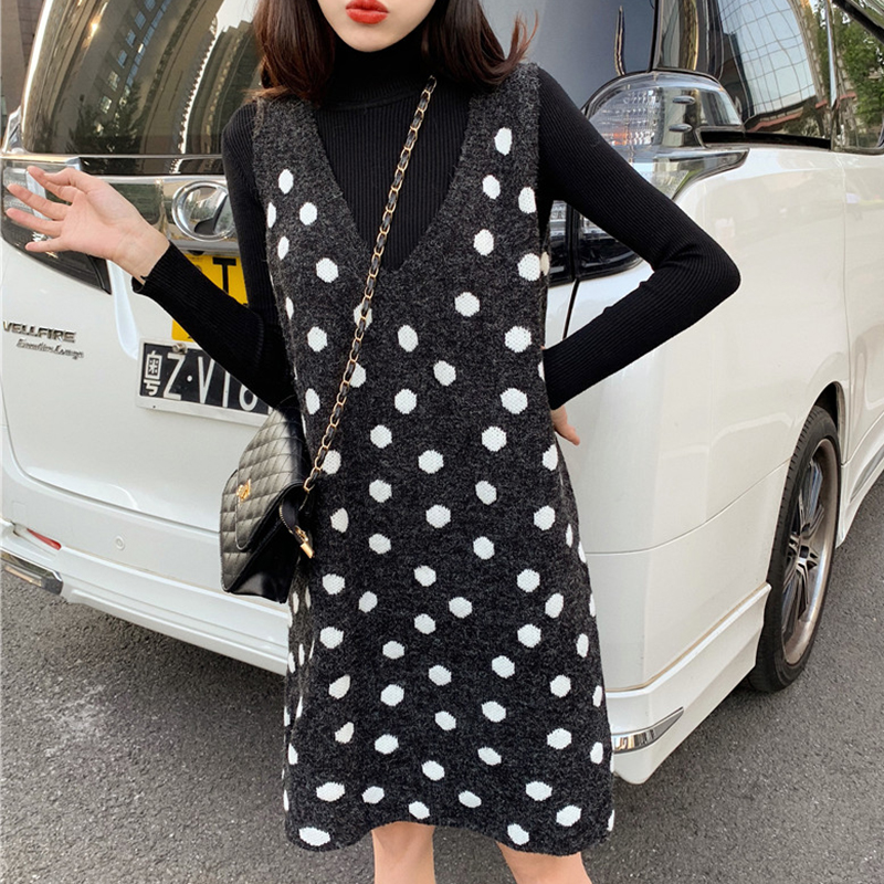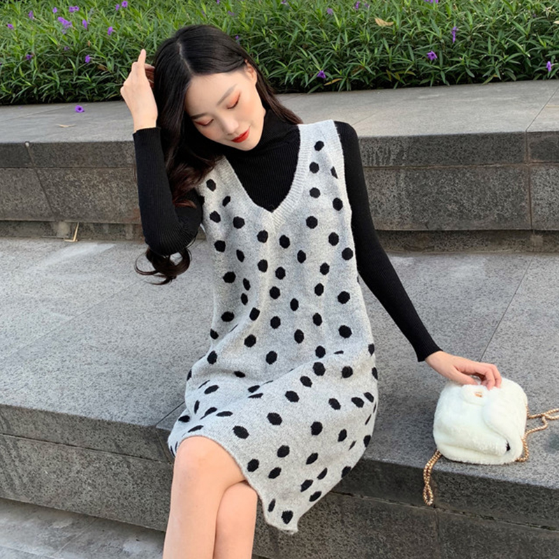 / 秋冬2018新款慵懶風毛衣背心裙子加修身高領針織打底衫兩件套裝女