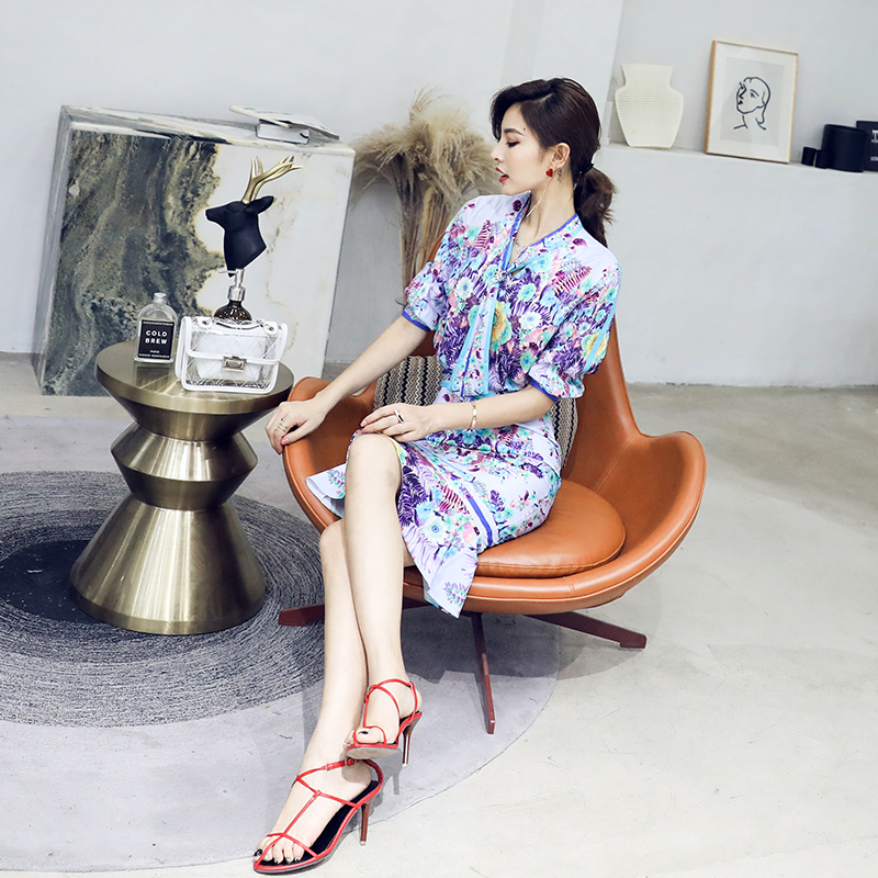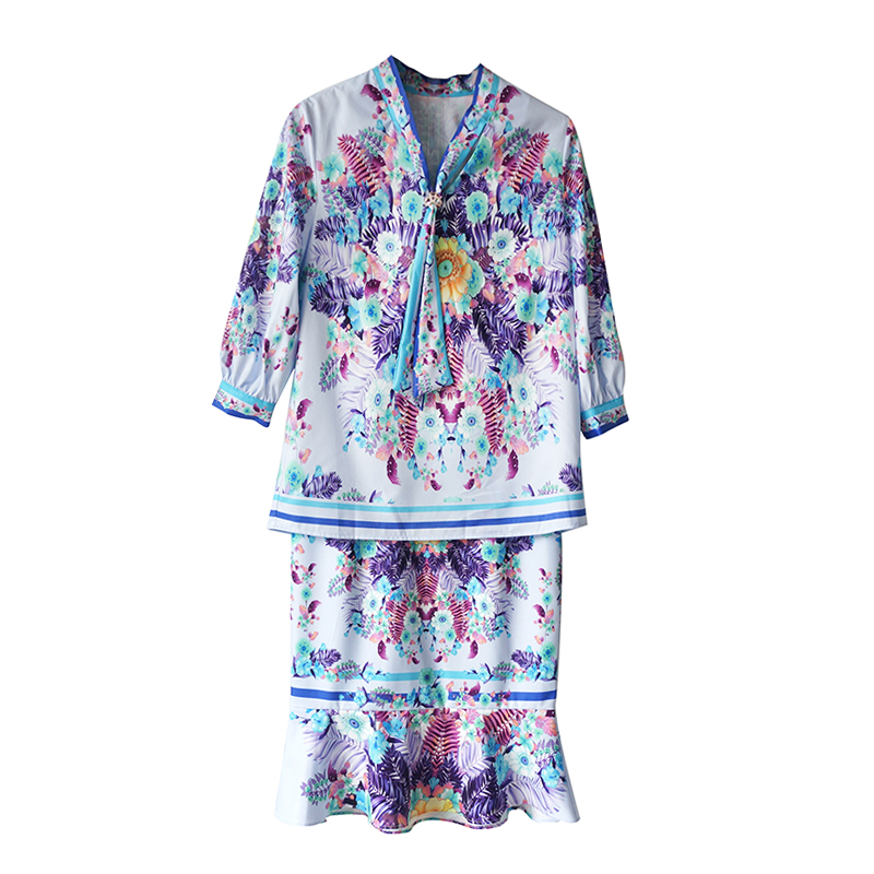 網紅2018新款女夏季時尚氣質印花套裝裙兩件套名媛氣質包臀魚尾裙