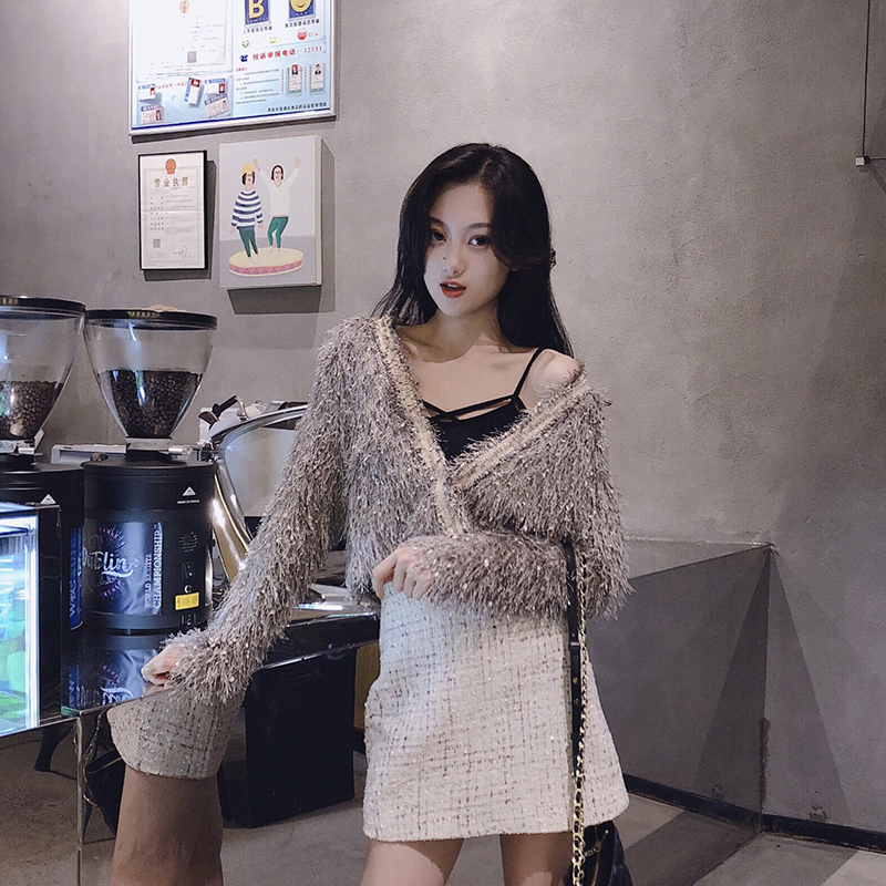 2018秋裝新款小香風時尚復古chic百搭毛毛披肩流蘇長袖外披外套女