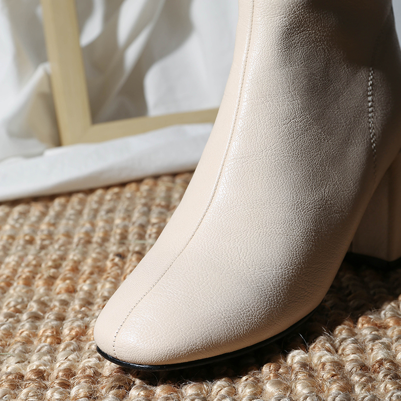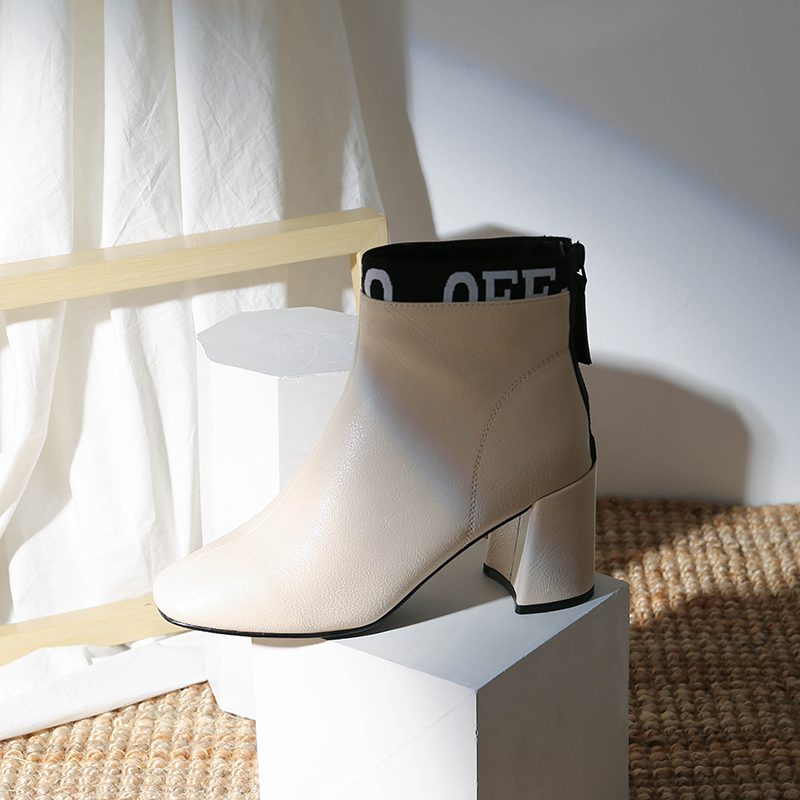 MG小象時尚高跟馬丁靴女冬季2018新款粗跟尖頭皮鞋保暖加絨短靴潮