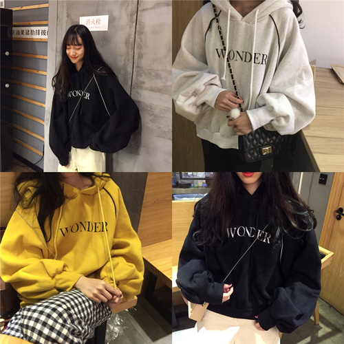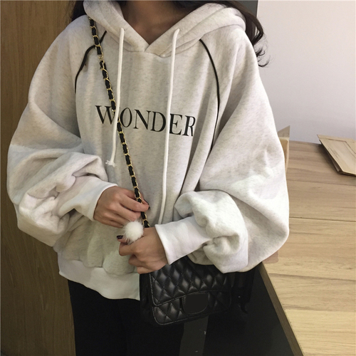 / 韓版小清新學生百搭復古chic上衣女加絨加厚寬松字母印花連帽衛衣