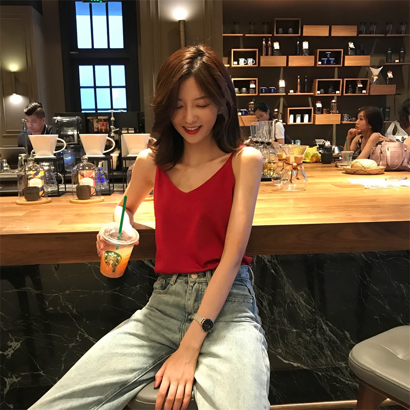 / 夏季2018新款港味修身顯瘦簡約基礎打底無袖針織背心吊帶上衣女潮