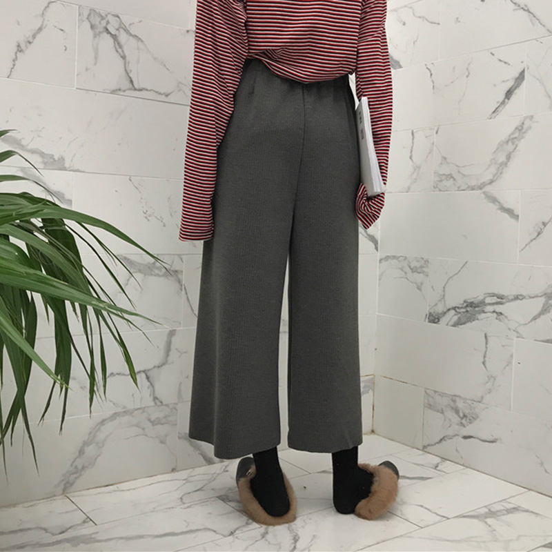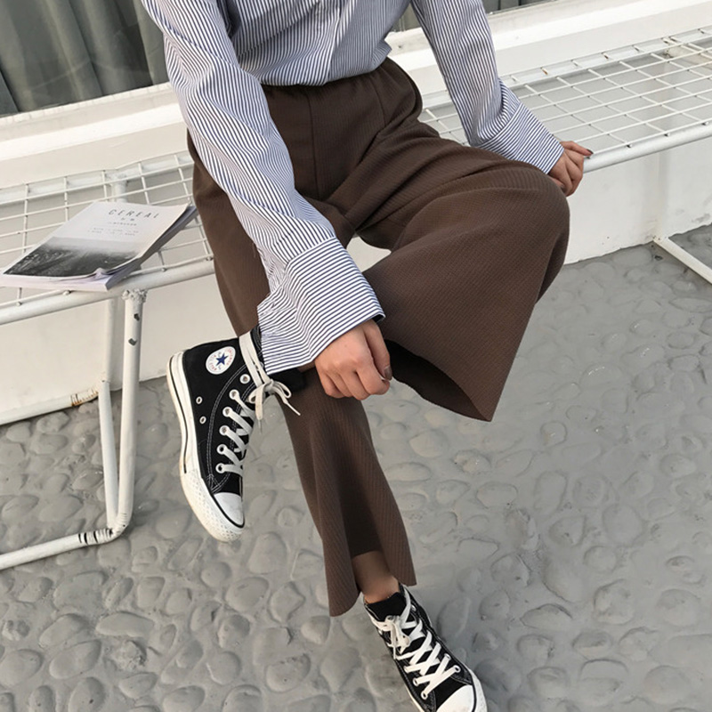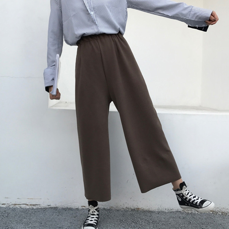闊腿休閑褲秋裝女2018新款復古高腰直筒黑褲子學生時尚寬松九分褲