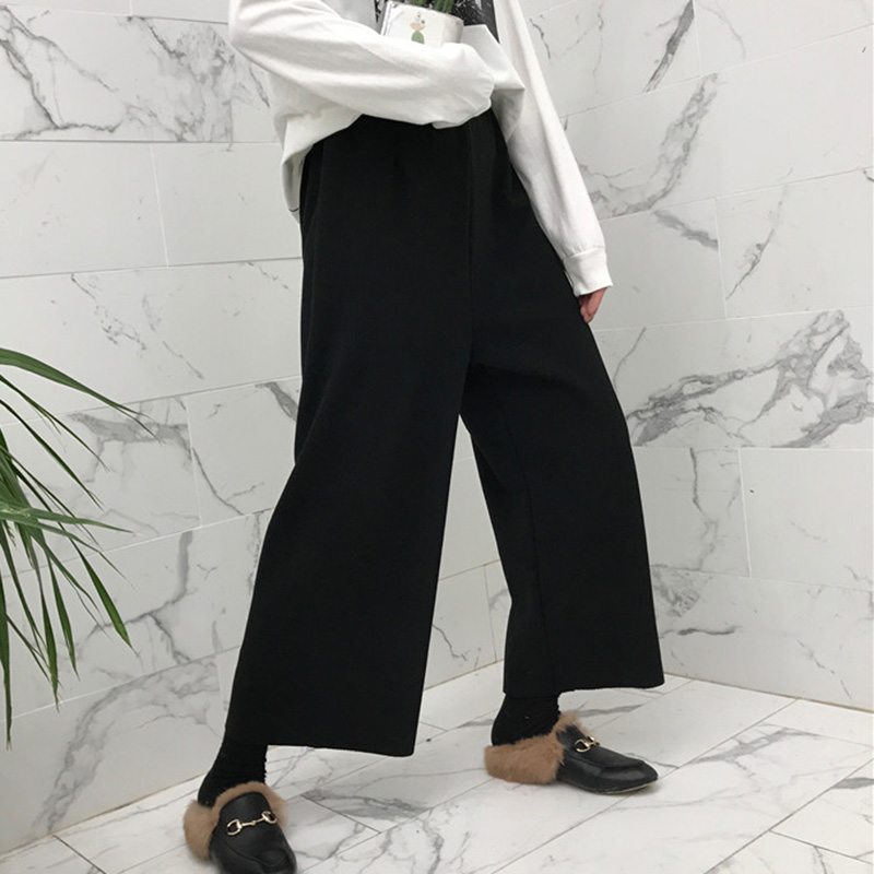/ 闊腿休閑褲秋裝女2018新款復古高腰直筒黑褲子學生時尚寬松九分褲