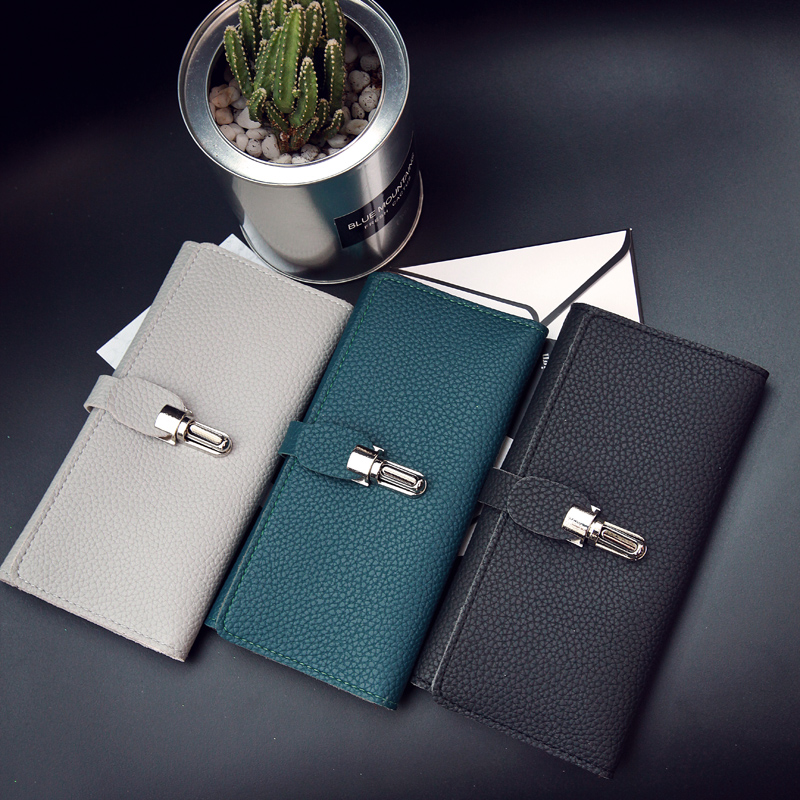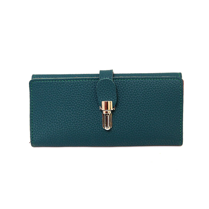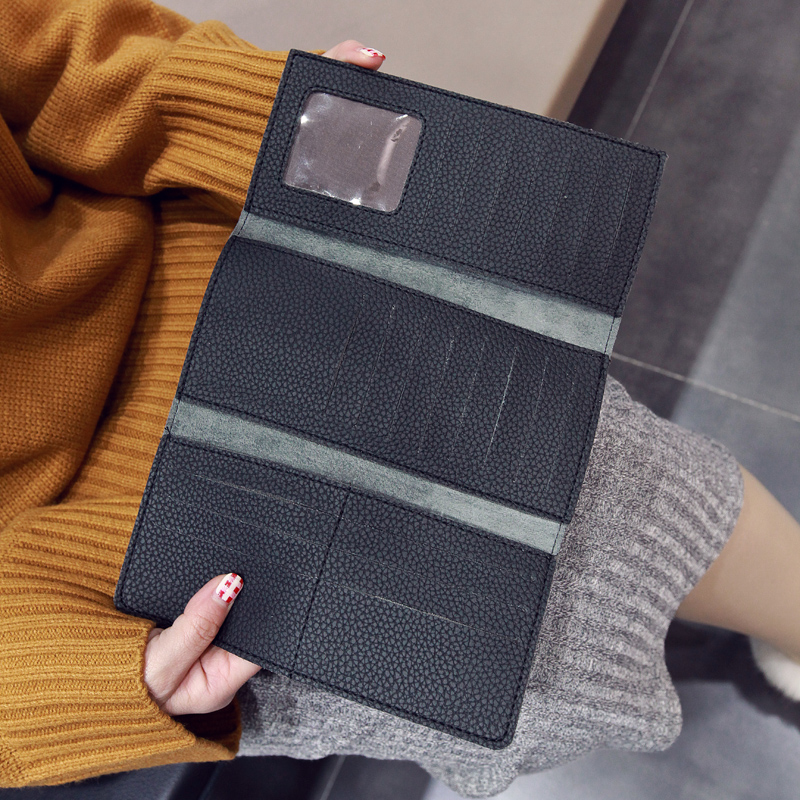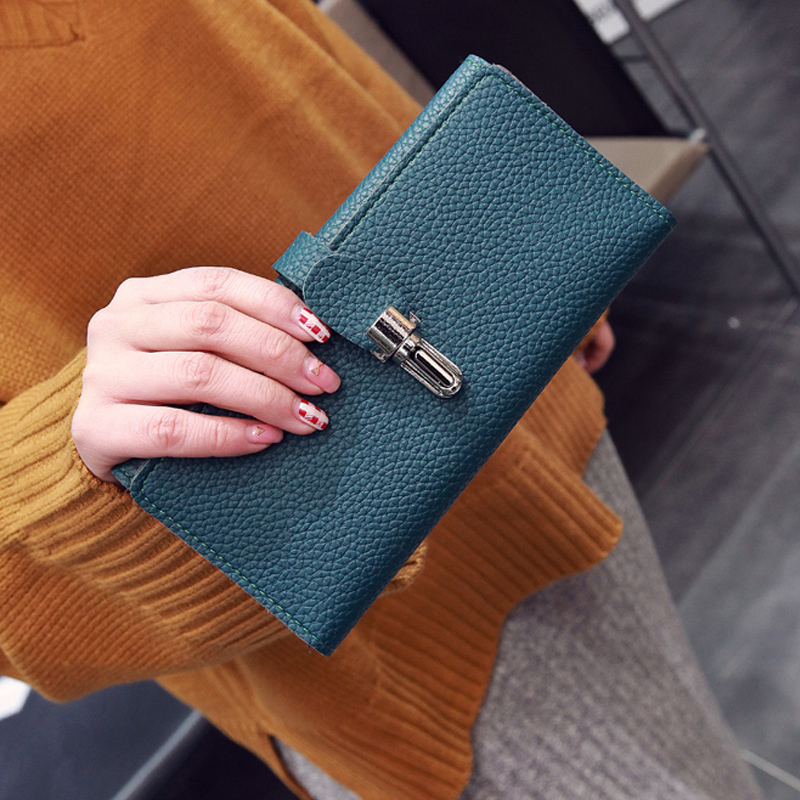新款錢包女長款 韓版簡約荔枝紋三折抽帶女式錢包錢夾