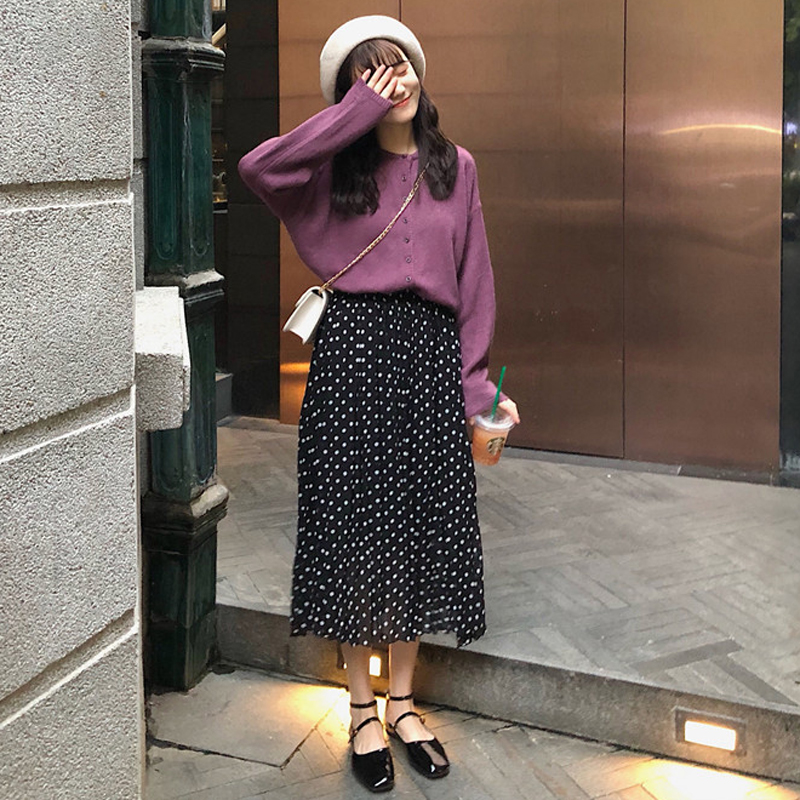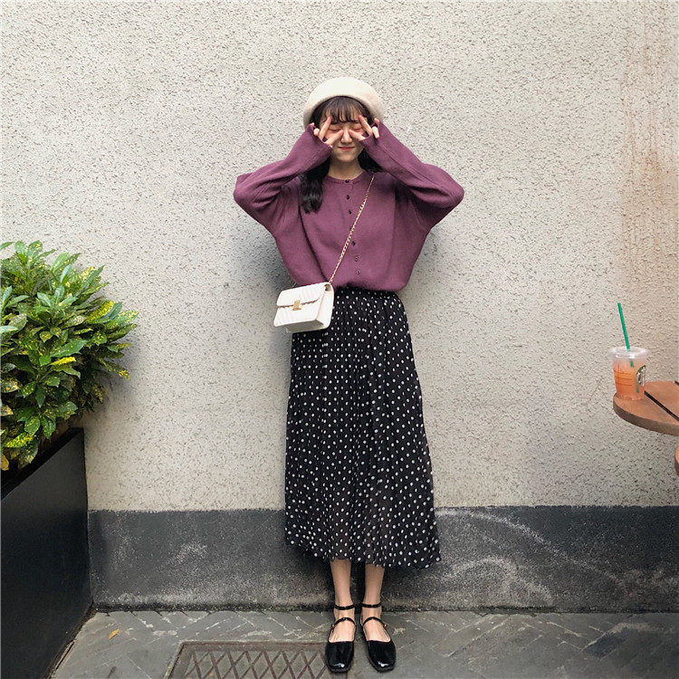 綠色毛衣單件|紫色毛衣單件|黑底白點半裙單件|白底黑點半裙單件