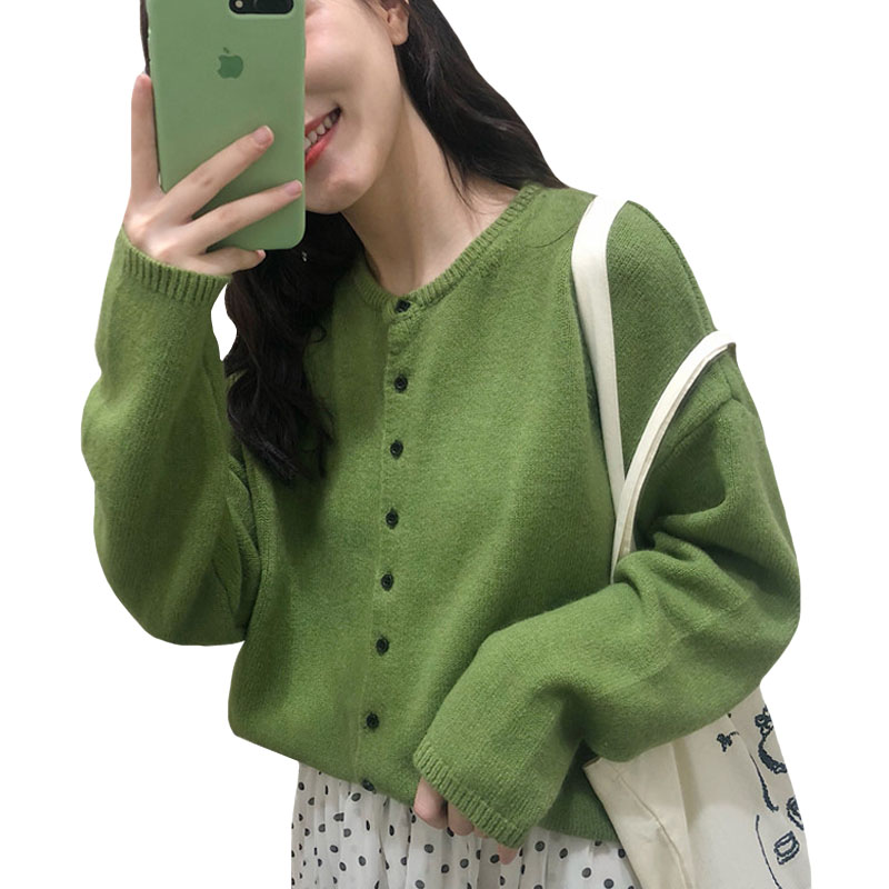 秋冬韓版純色學院風慵懶風網紅超火毛衣寬松針織衫開衫上衣外套女