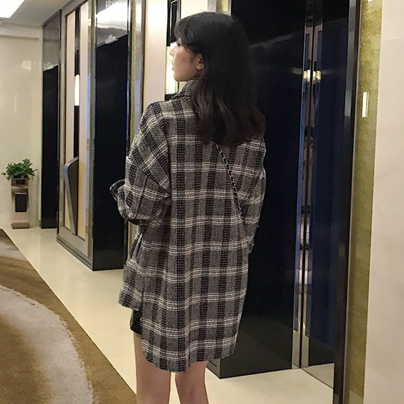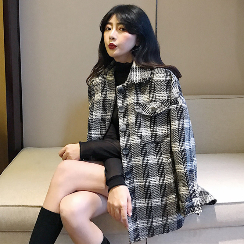 / 2018流行中長款毛呢外套女秋冬裝新款赫本大衣小個子格紋開衫上衣