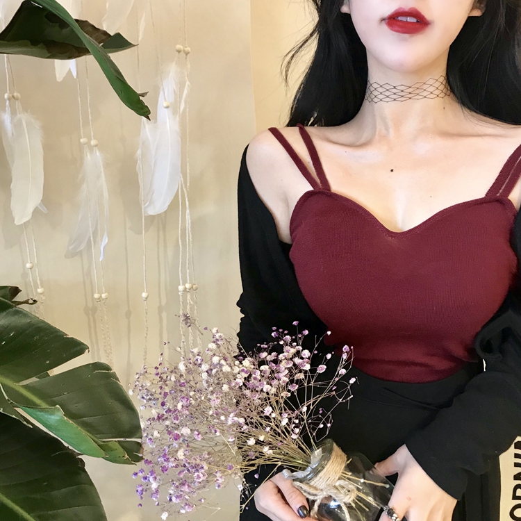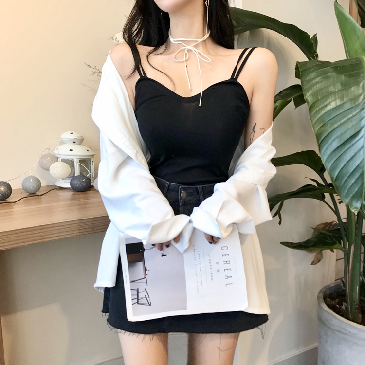 / 韓國新款修身針織棉短款打底小心機設計感百搭小吊帶背心純色上衣