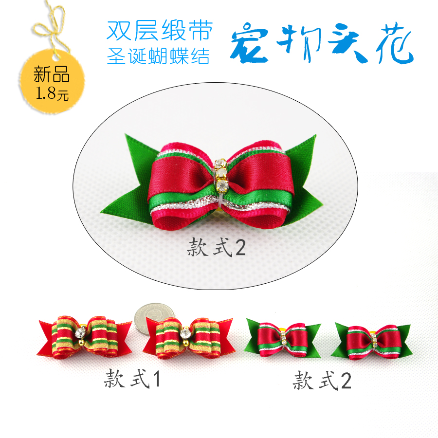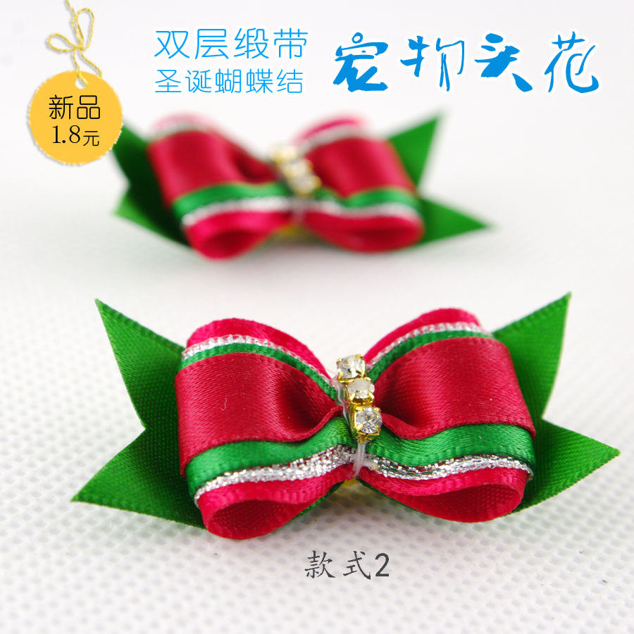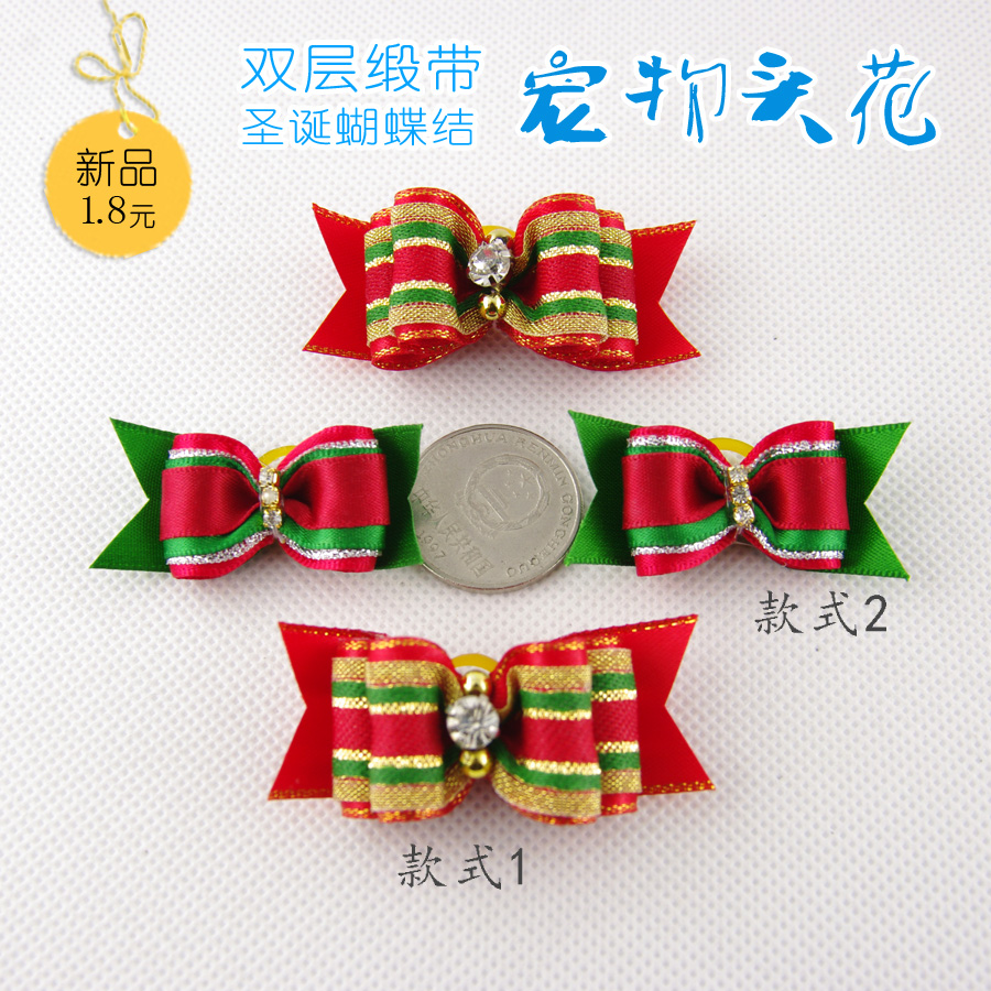 / 寵物用品雙層緞帶圣誕蝴蝶結頭花狗狗頭花狗狗頭飾高檔寵物頭花