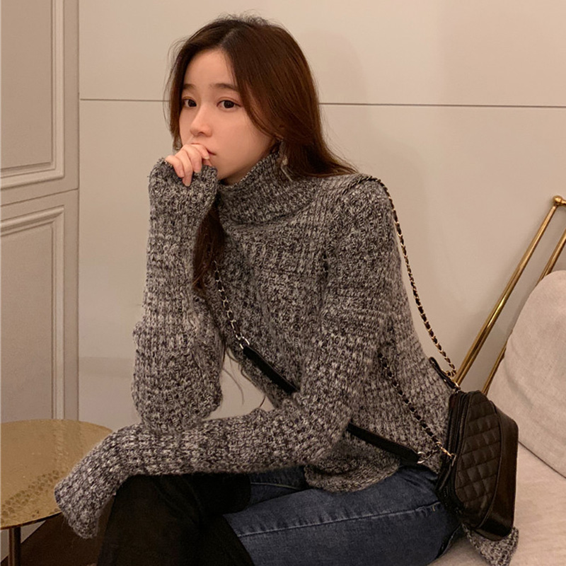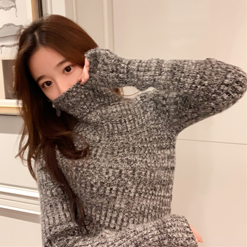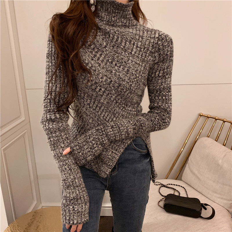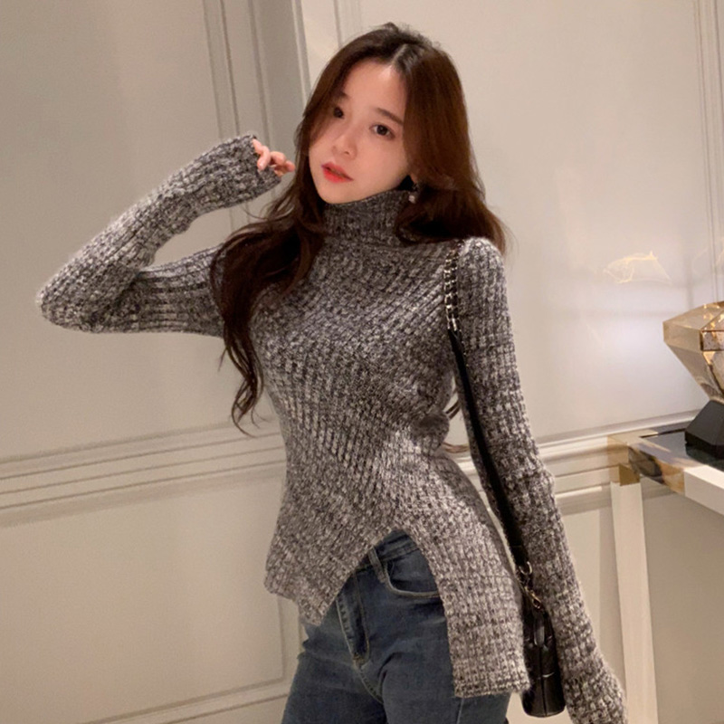 原宿毛衣女秋冬裝2018新款不規則開叉修身長袖學生高領打底針織衫
