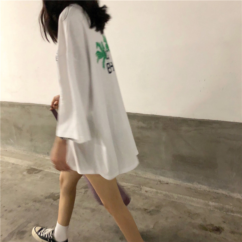 / 新款夏季韓版女裝前后字母印花九分袖T恤休閑百搭寬松圓領上衣女