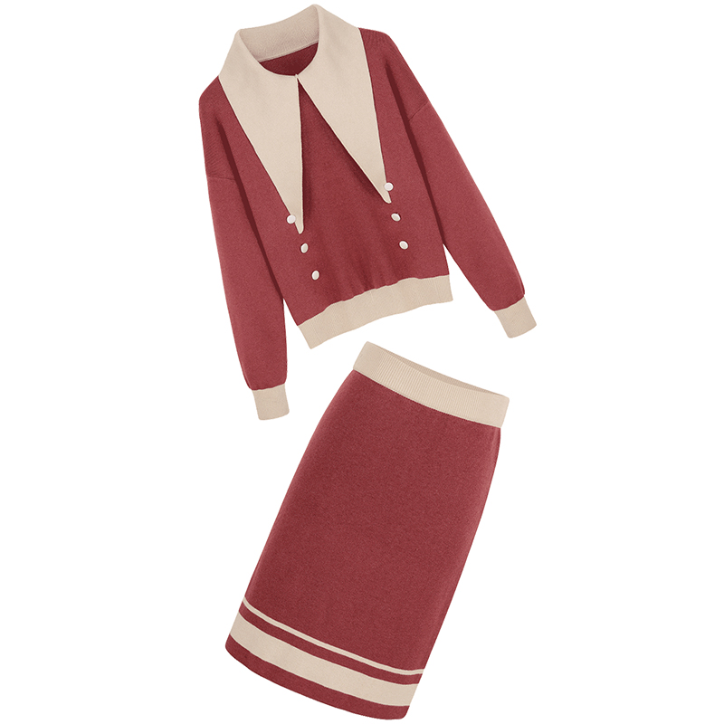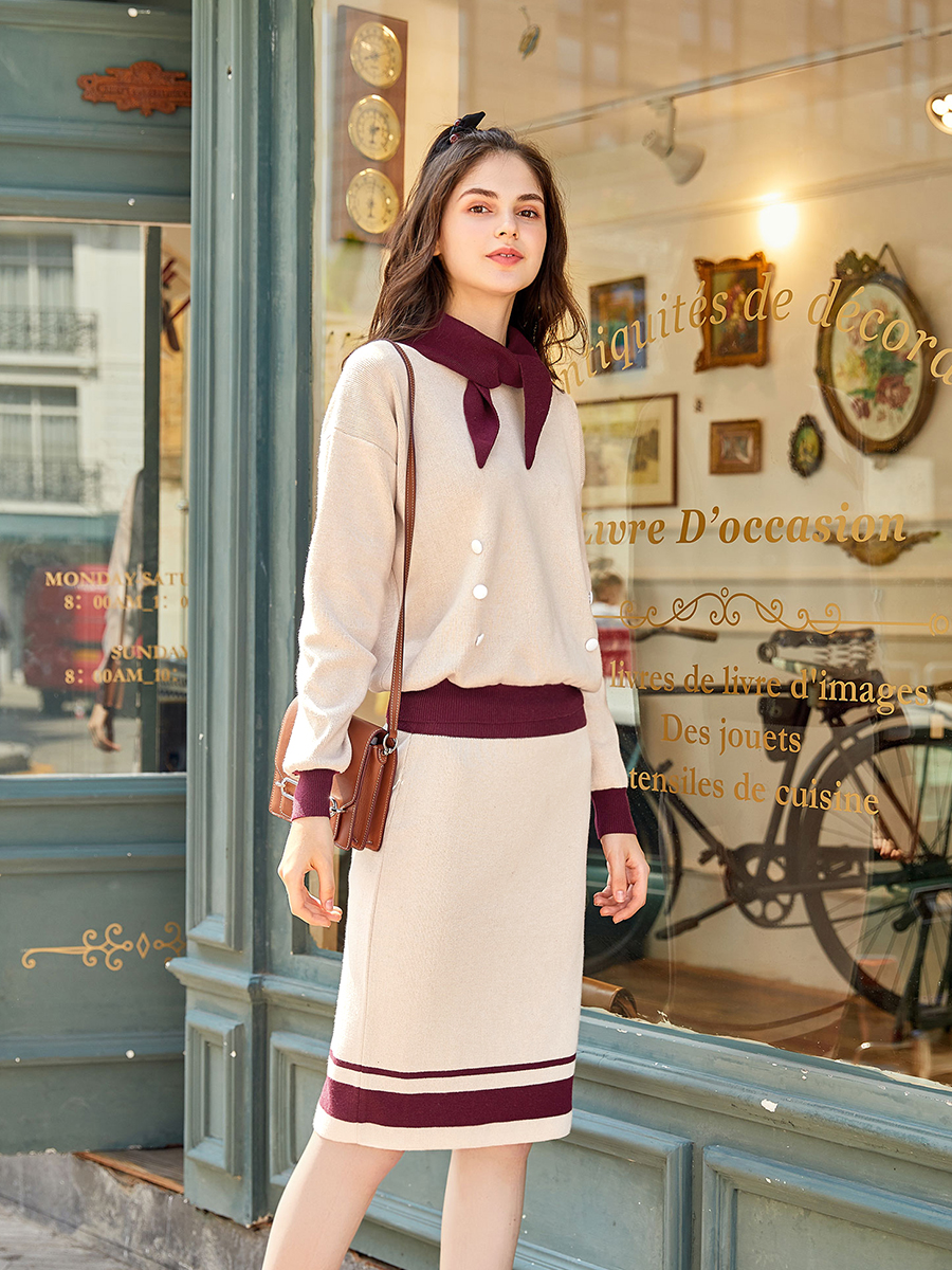 毛衣-棗紅色|毛衣-米色|半裙-棗紅色|半裙-米色
