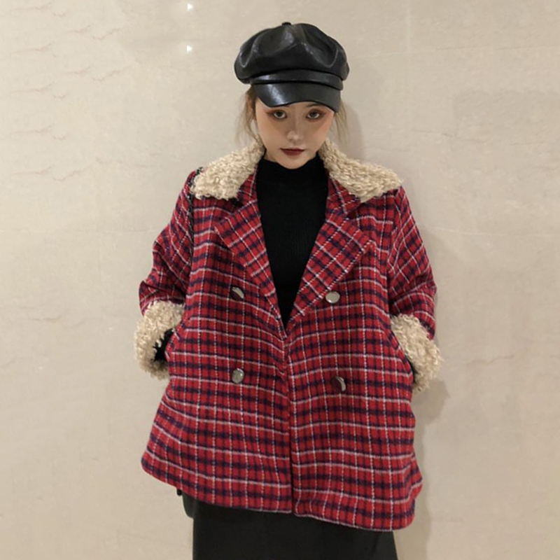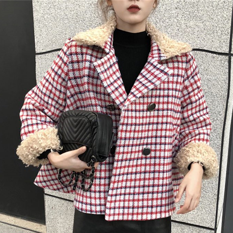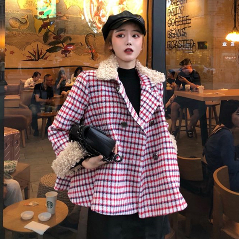 / 洋氣兩件套女秋裝2018新款毛呢格子大衣寬松外套修身長袖打底上衣