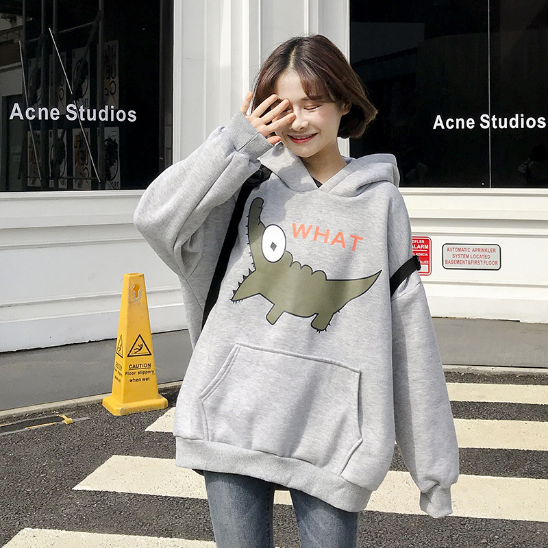 2018新款秋冬韓版原宿風卡通連帽加絨加厚套頭超火衛衣上衣外套女