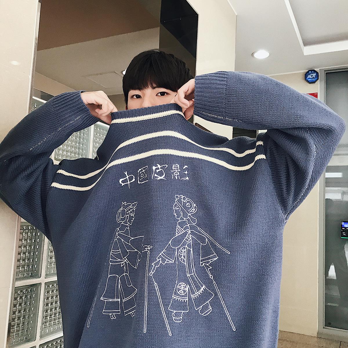 2018新款寬松男士毛衣韓版潮牌港風針織衫外套半高領潮流修身冬季