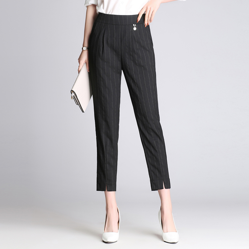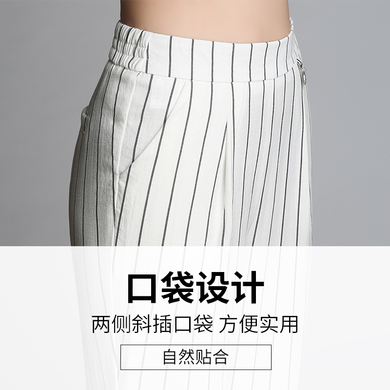 / 春夏哈倫褲寬松蘿卜褲大碼闊腿九分褲女黑色休閑條紋西裝褲女褲子