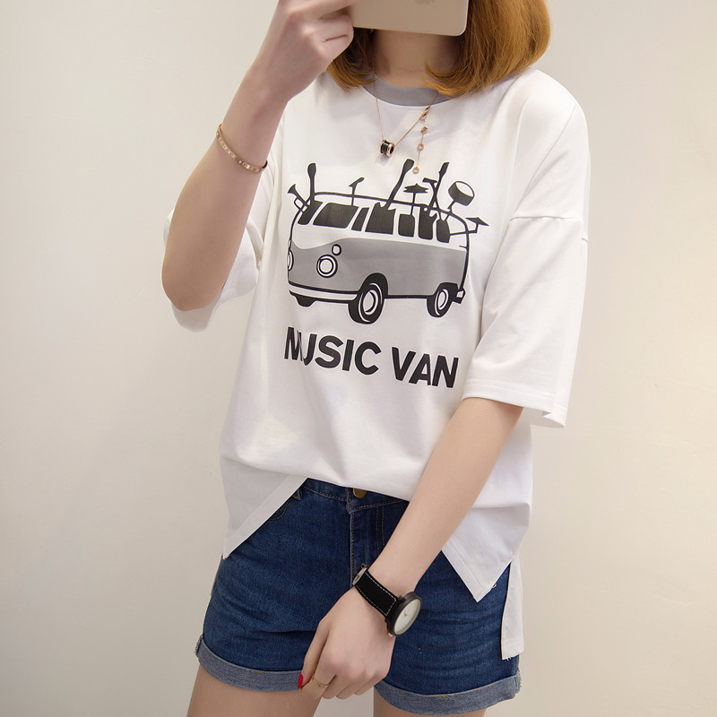 短袖上衣女夏新款白色t恤女半袖韓版卡通百搭簡約學生體恤衫