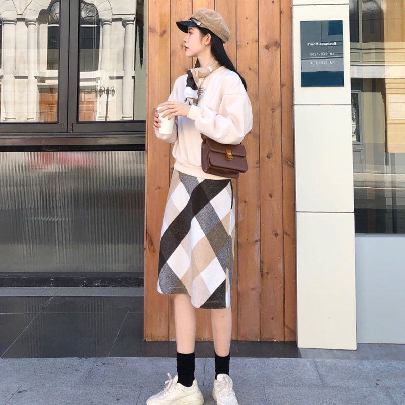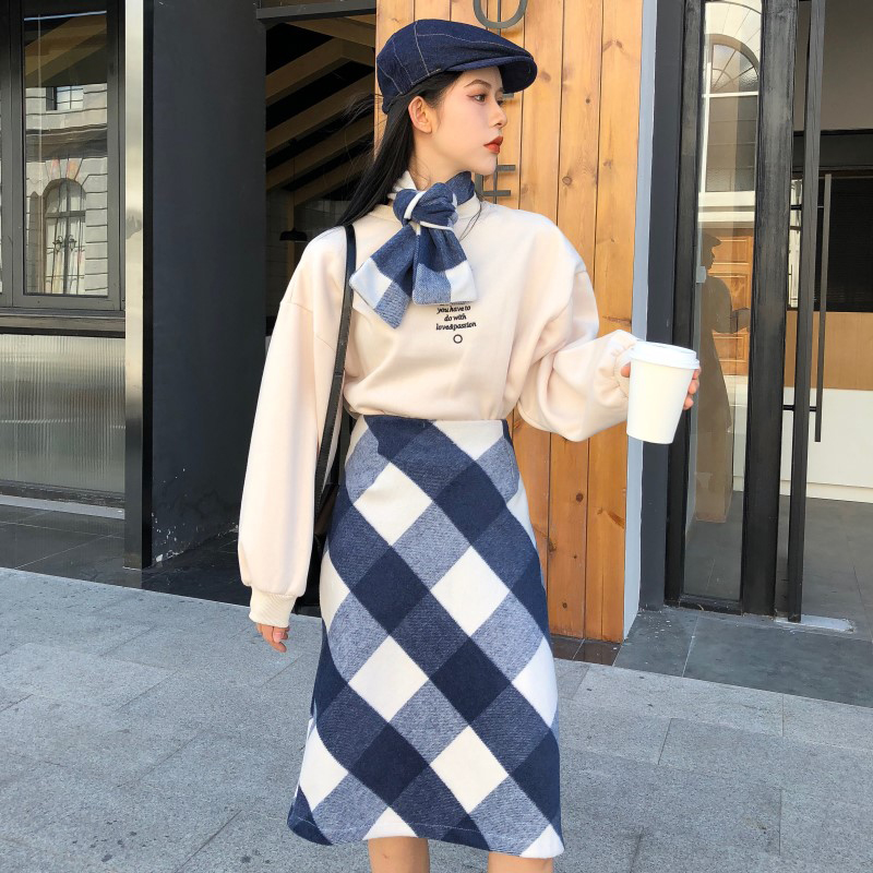 / 女神套裝2018秋冬新款寬松字母刺繡長袖衛衣高腰顯瘦毛呢半身裙子