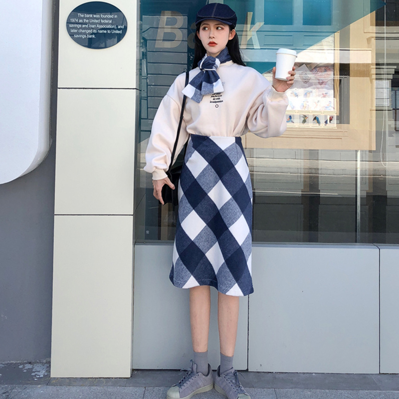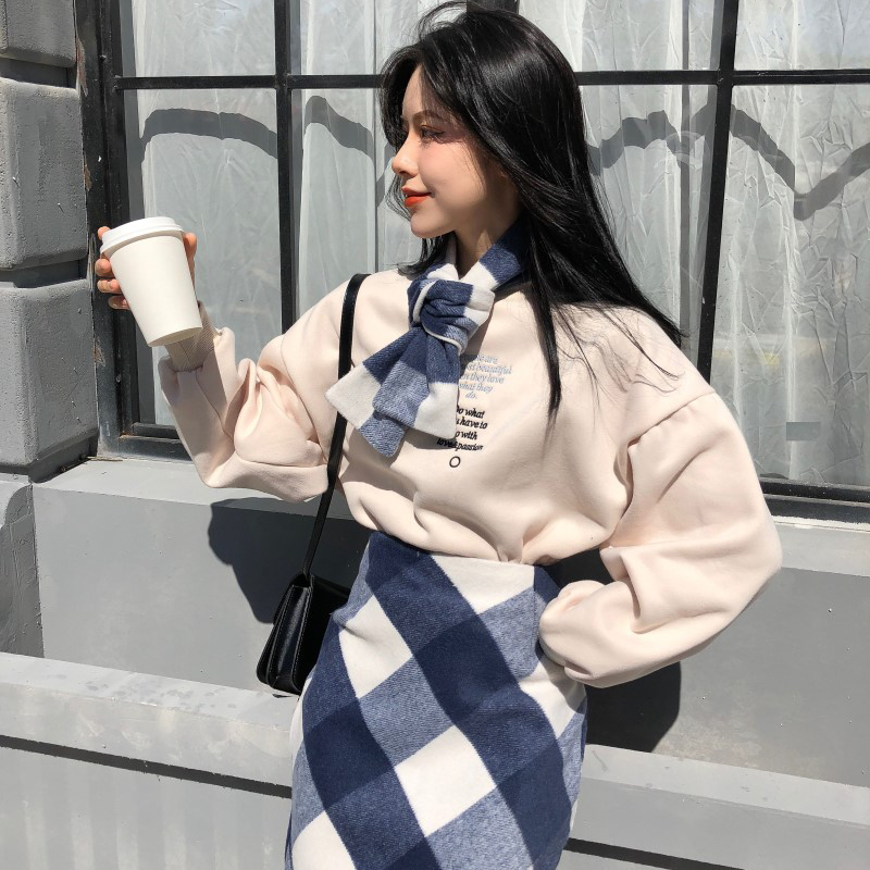 女神套裝2018秋冬新款寬松字母刺繡長袖衛衣高腰顯瘦毛呢半身裙子