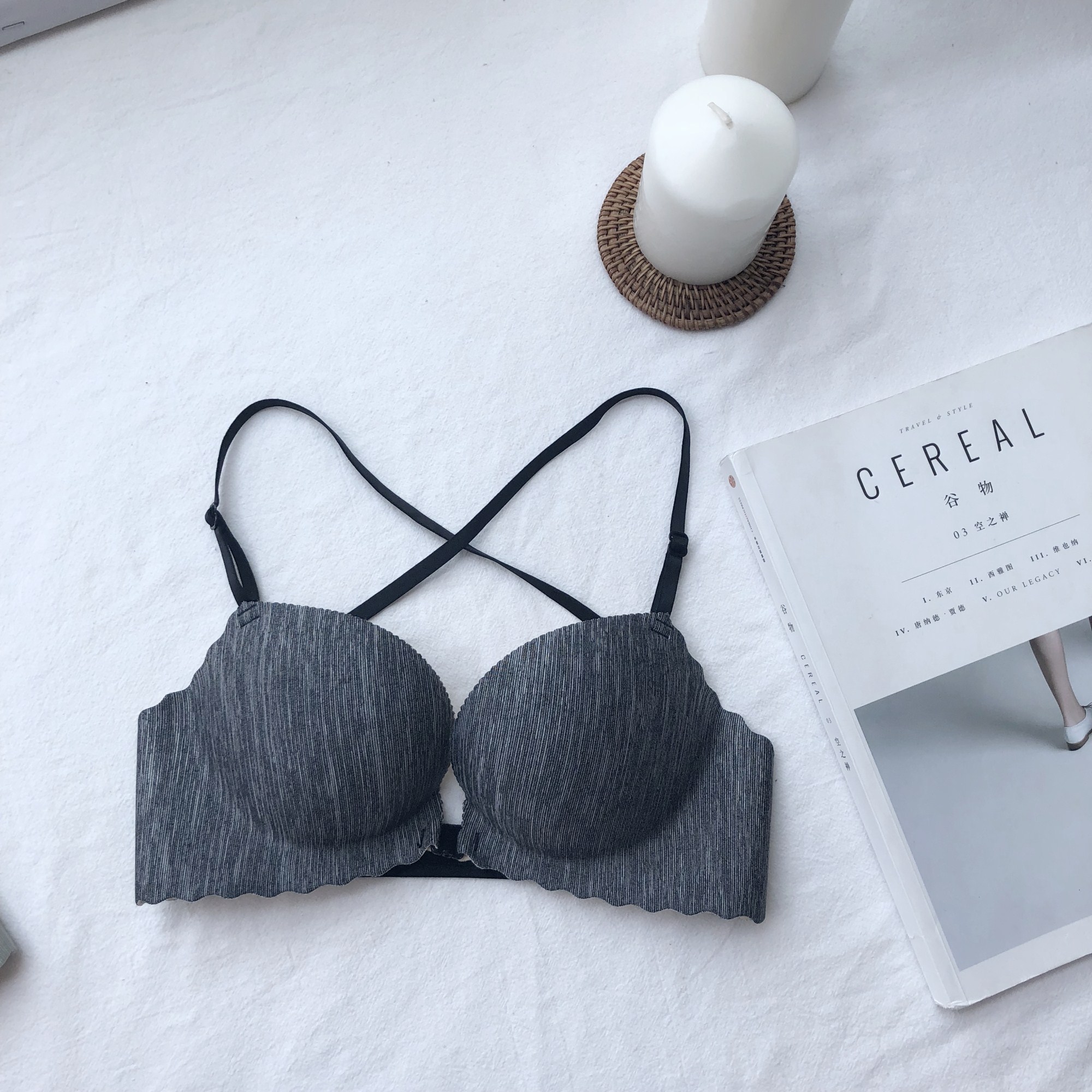 秋裝女2018新款前扣美背內衣上托無鋼圈少女性感無痕交叉聚攏文胸