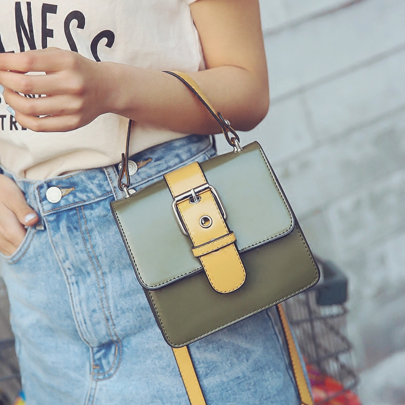 / 包包女新款潮撞色手提包韓版迷你小方包單肩女包百搭斜挎小包