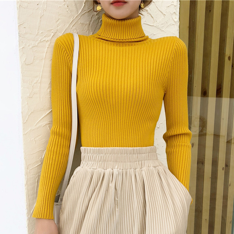 秋裝女2018新款韓版氣質修身高領套頭長袖針織衫時尚黑色顯瘦上衣