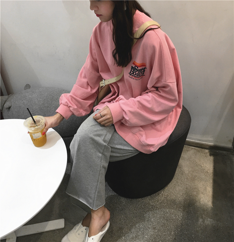 / 秋季女裝韓版寬松百搭抽繩休閑褲高腰顯瘦闊腿褲運動褲直筒褲長褲