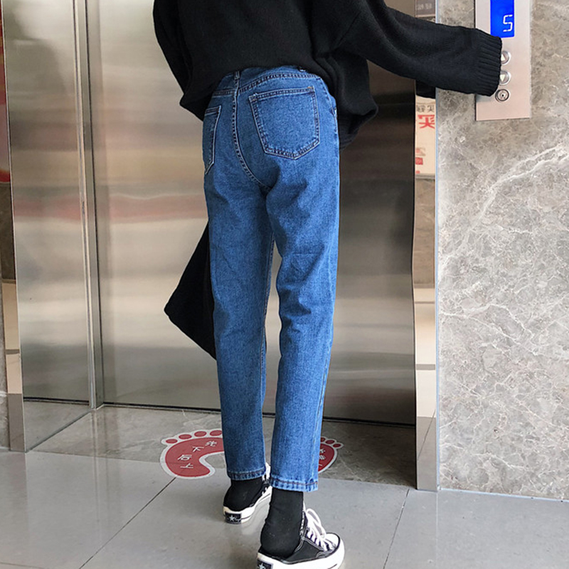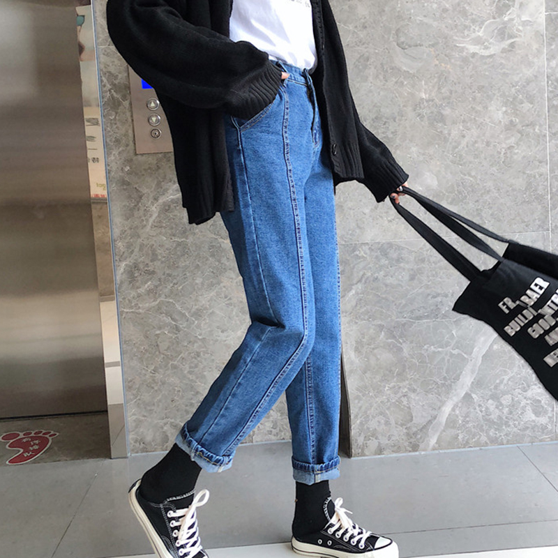 初戀褲秋冬裝2018新款怪味少女直筒褲高腰寬松顯瘦牛仔褲長褲子潮