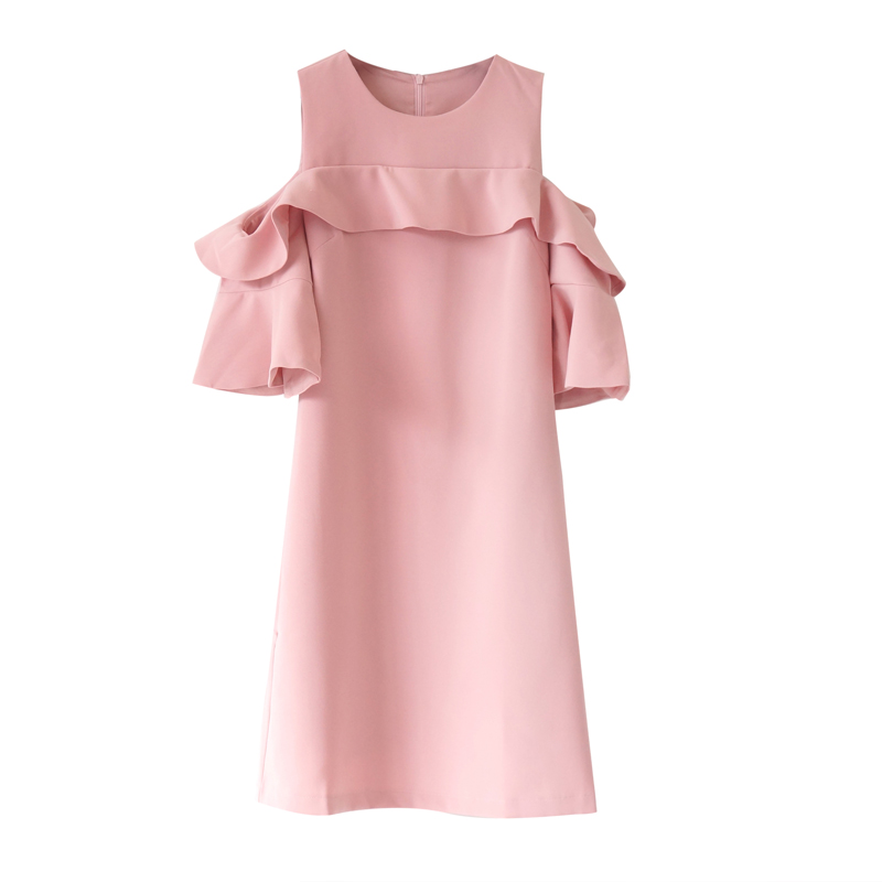 / S秀2018夏季新款時尚露肩性感甜美圓領短袖高腰連衣裙飛飛袖A字裙