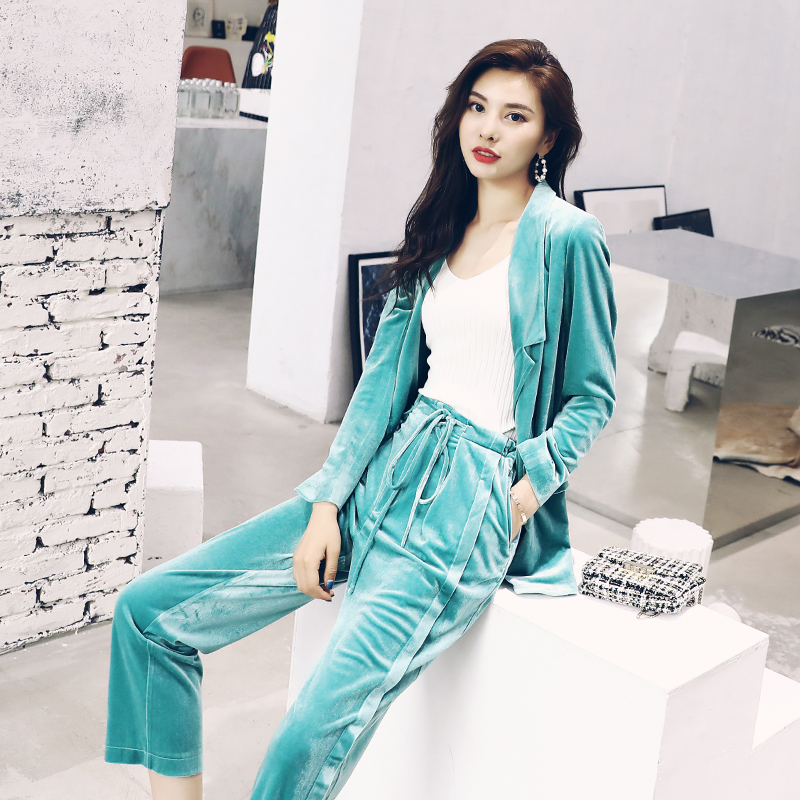 運動套裝女春秋2018新款港味休閑長袖西裝外套九分小腳褲兩件套裝