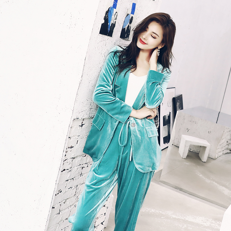 / 運動套裝女春秋2018新款港味休閑長袖西裝外套九分小腳褲兩件套裝
