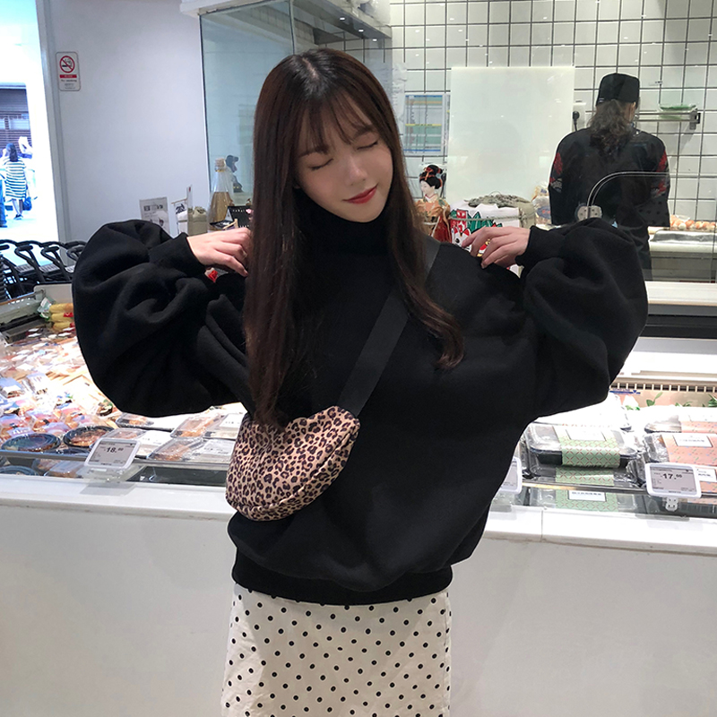 / 2018新款秋冬韓版寬松純色加絨加厚半高領套頭超火衛衣上衣外套女