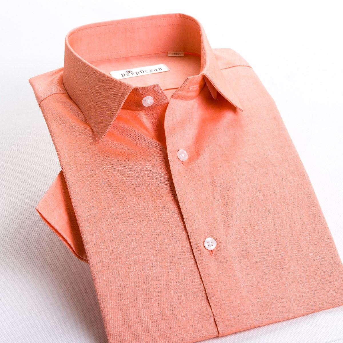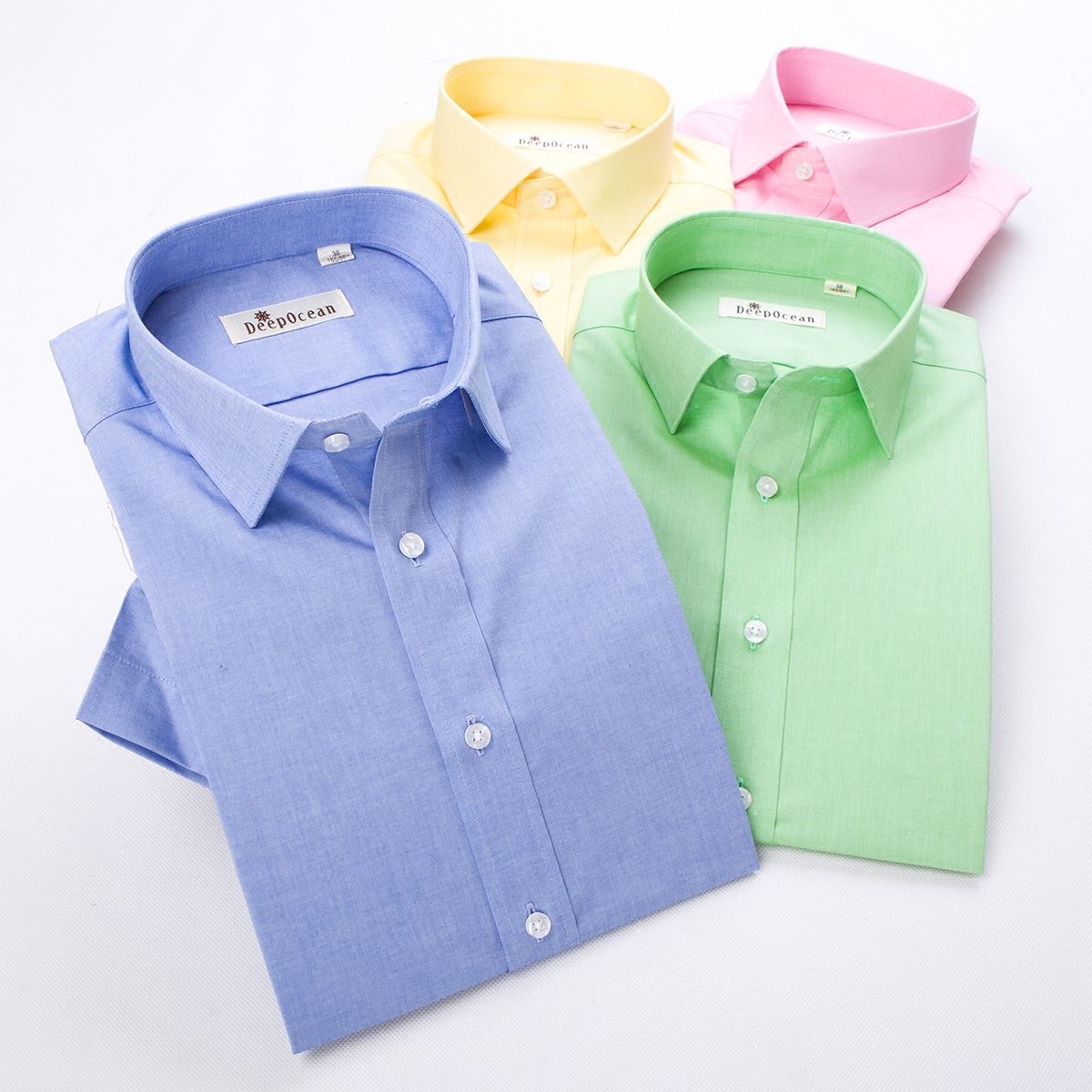 / 夏季薄款牛津紡短袖方領襯衫男韓版修身純棉舒適休閑男式純色襯衣