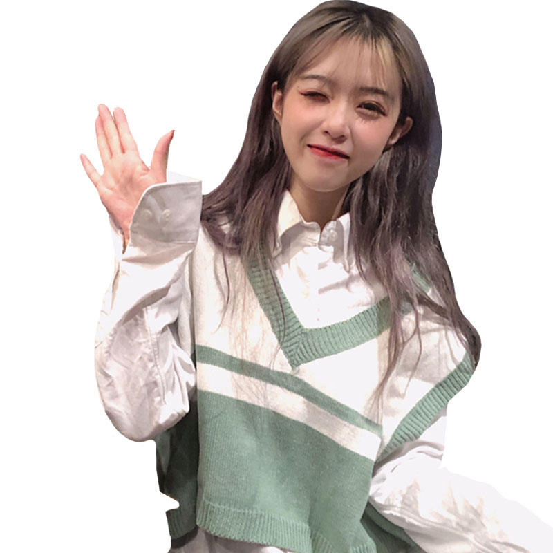 / 秋季女裝韓版學院風時尚寬松百搭針織衫無袖背心短款馬甲上衣外套