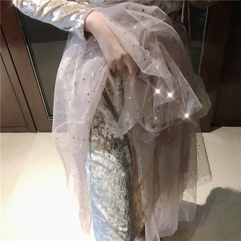 港味秋冬2018新款溫柔風套裝時尚氣質絲絨上衣+網紗半身裙兩件套