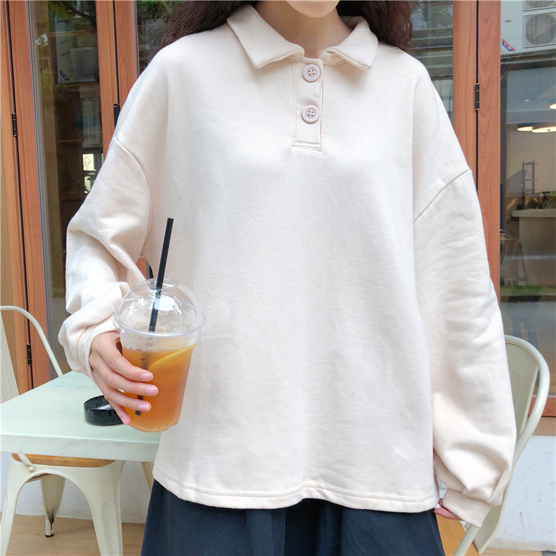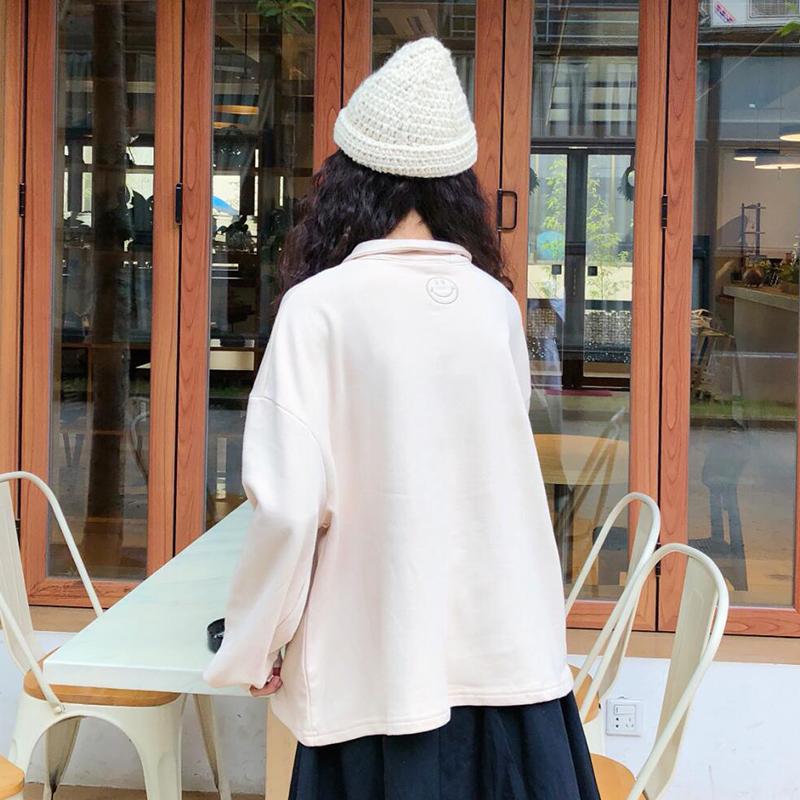 / 秋裝女裝新款韓版寬松刺繡polo衫長袖衛衣女薄款學生休閑短款上衣