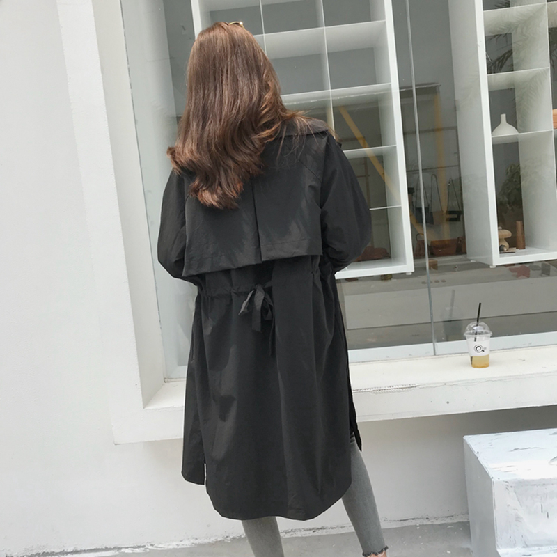 春秋新款女裝韓版寬松顯瘦系帶七分袖中長款過膝風衣外套女開衫潮