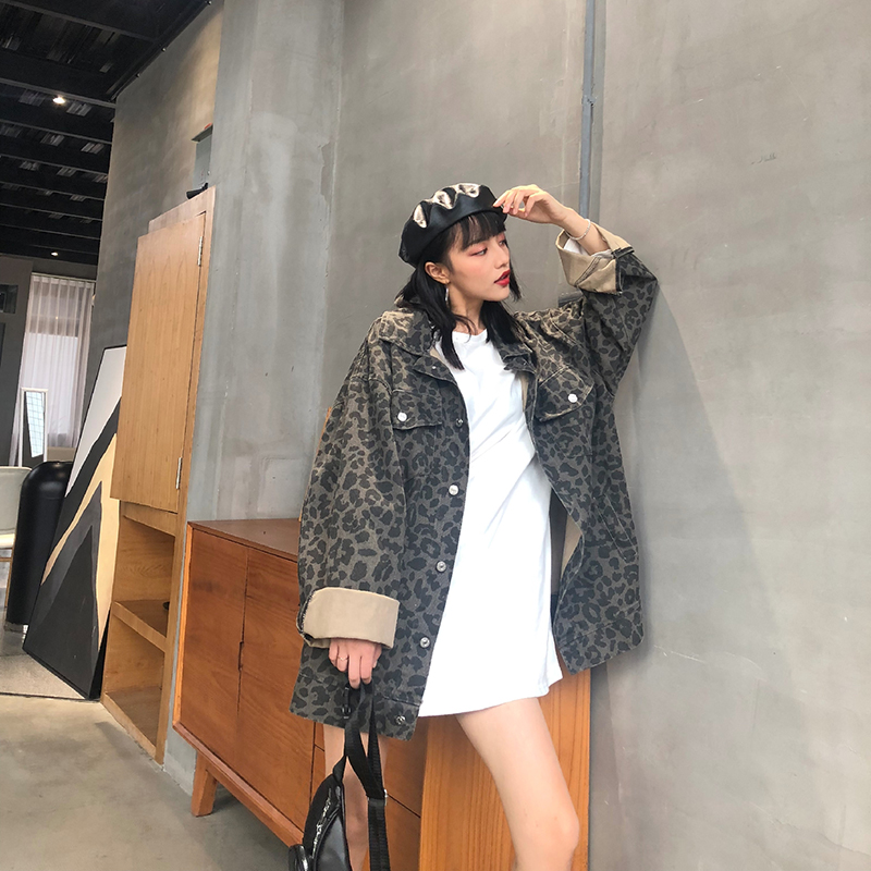 秋裝女2018新款韓版時尚大袖子中長款豹紋風衣外套春秋大碼上衣潮