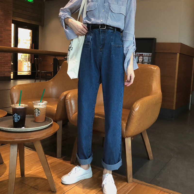 / 復古寬松顯瘦直筒褲女學生秋裝藍色牛仔褲子港味高腰2018新款長褲
