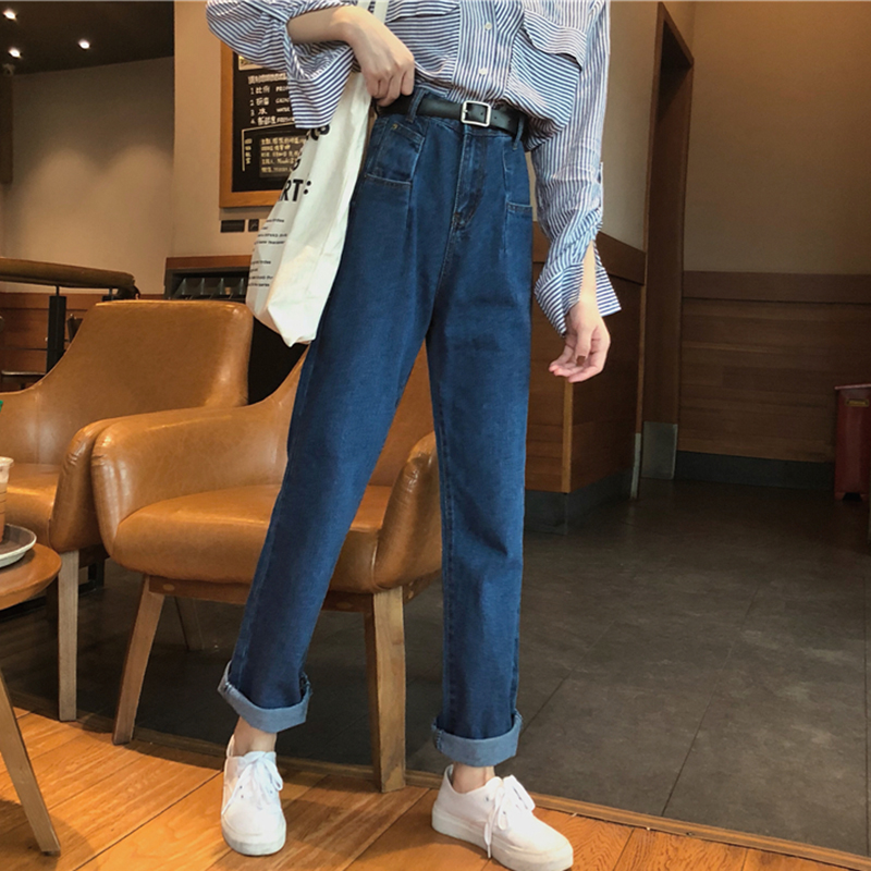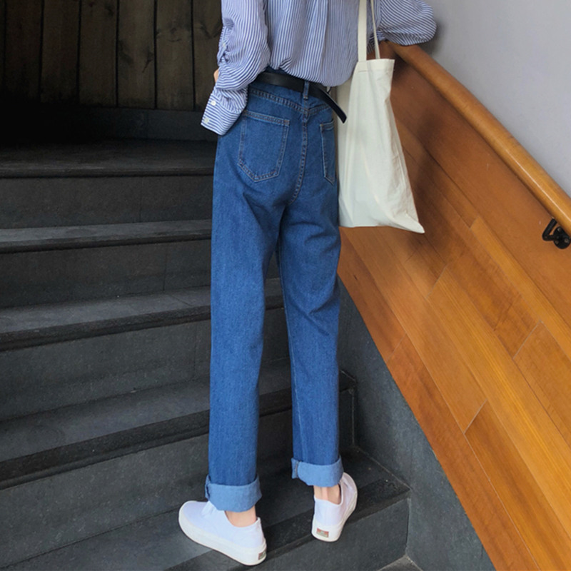 復古寬松顯瘦直筒褲女學生秋裝藍色牛仔褲子港味高腰2018新款長褲
