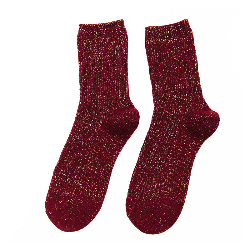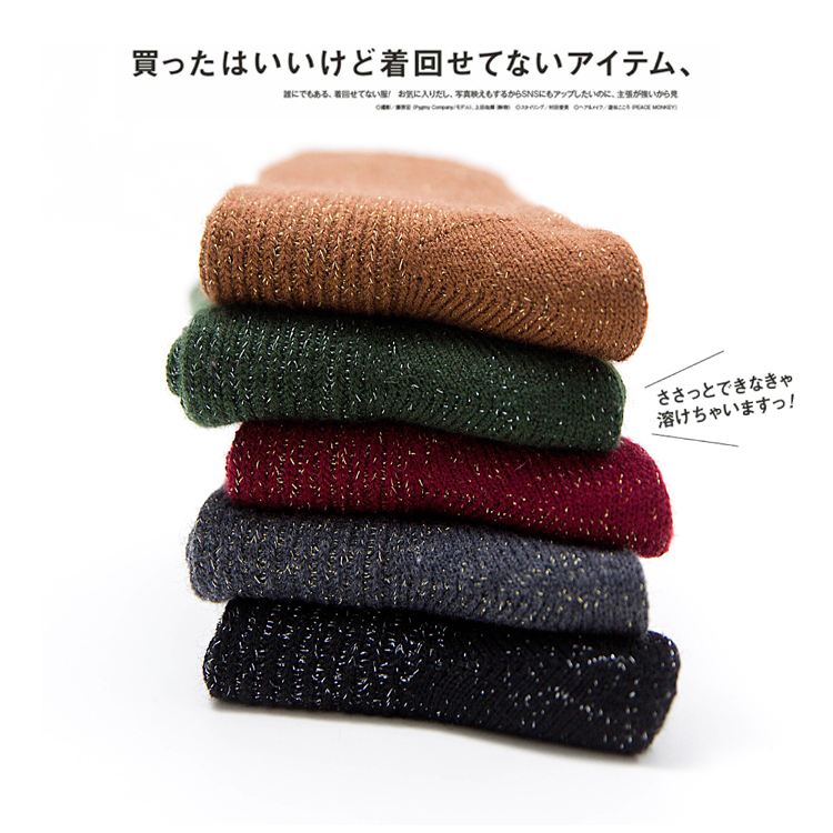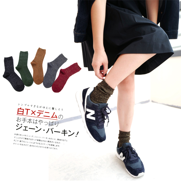 云木雜貨 日韓柔軟羊毛銀蔥女秋冬復古純色中筒襪百搭女潮堆堆襪