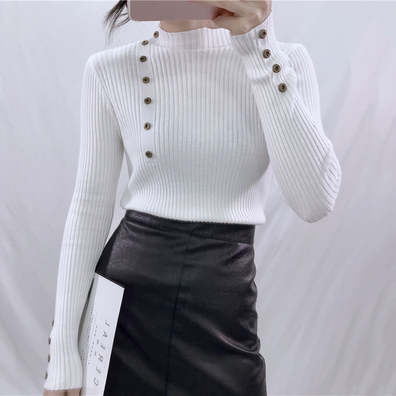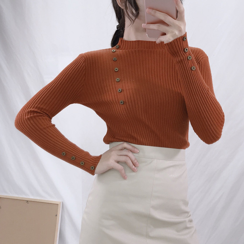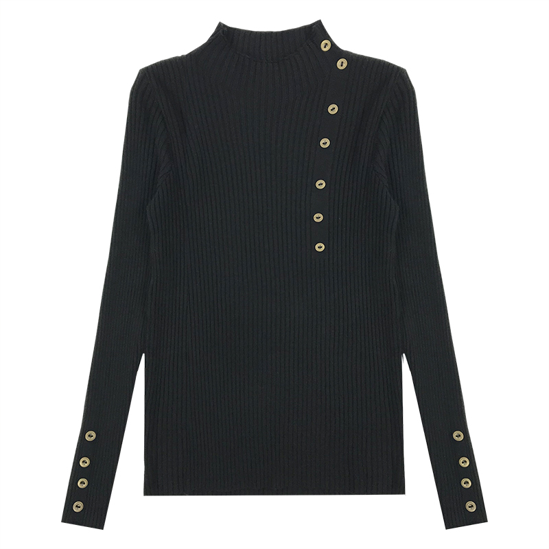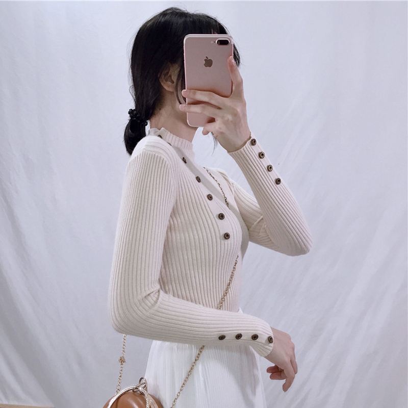 針織衫女秋冬裝2018新款韓版修身紐扣短款長袖上衣外穿內搭打底衫