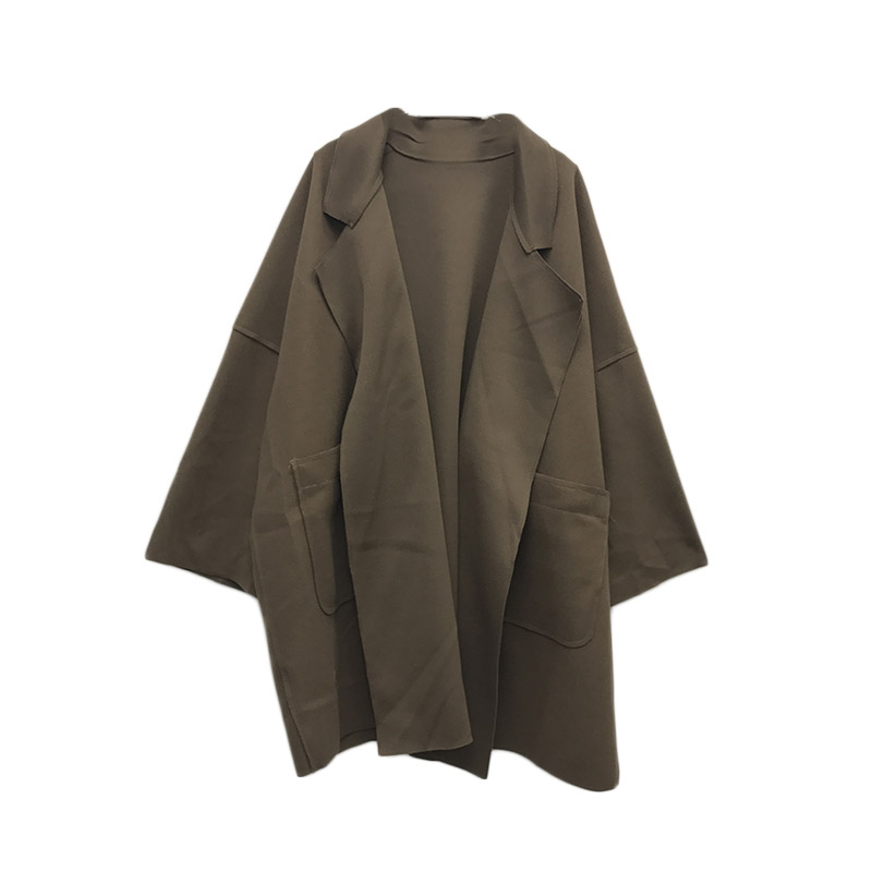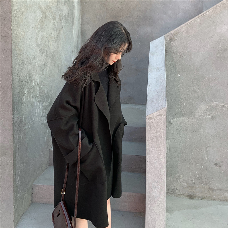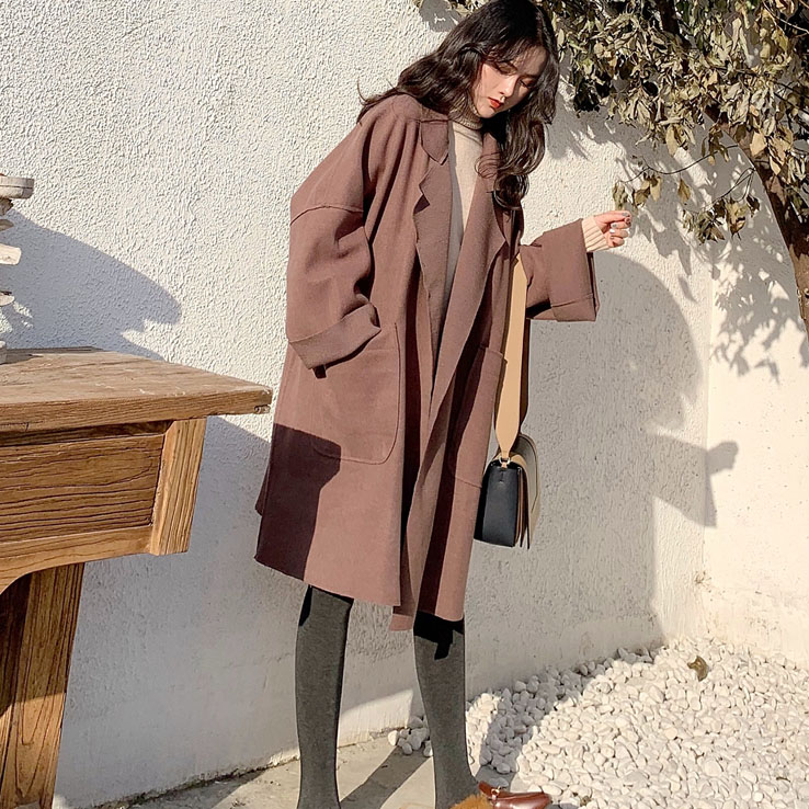 復古溫柔慵懶風隨意暖色系百搭寬松中長款毛呢外套女韓版呢子大衣