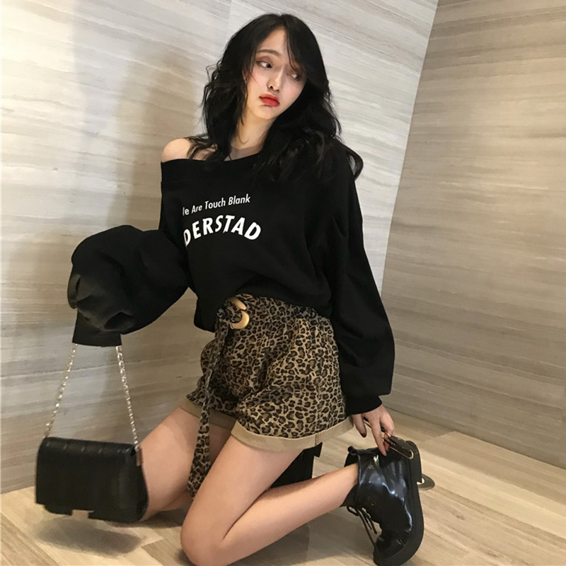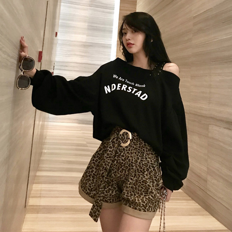 / 個性柳釘露肩衛衣秋裝女2018新款韓版寬松慵懶風字母長袖上衣外套