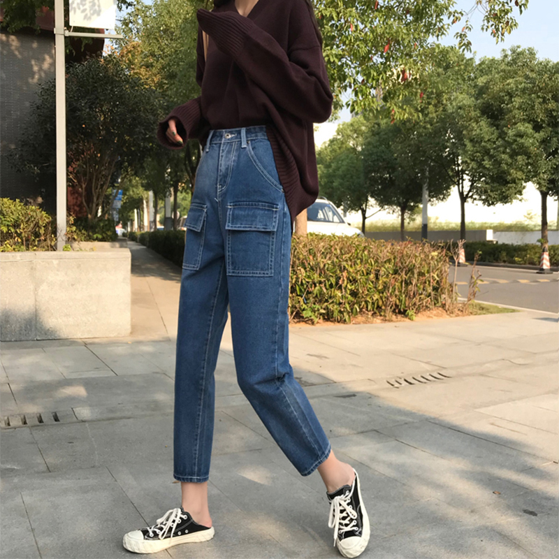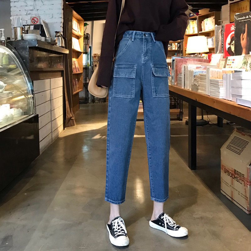 / 怪味少女高腰顯瘦牛仔褲秋冬裝新款學生復古寬松九分直筒休閑褲子