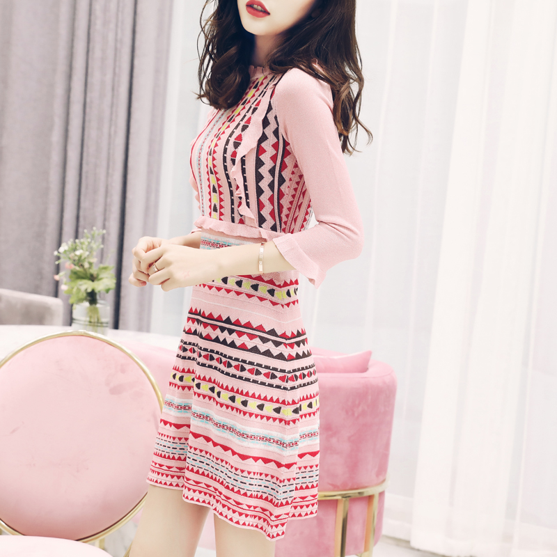 / 連衣裙女夏2018新款韓版名媛氣質顯瘦七分袖木耳邊針織裙子