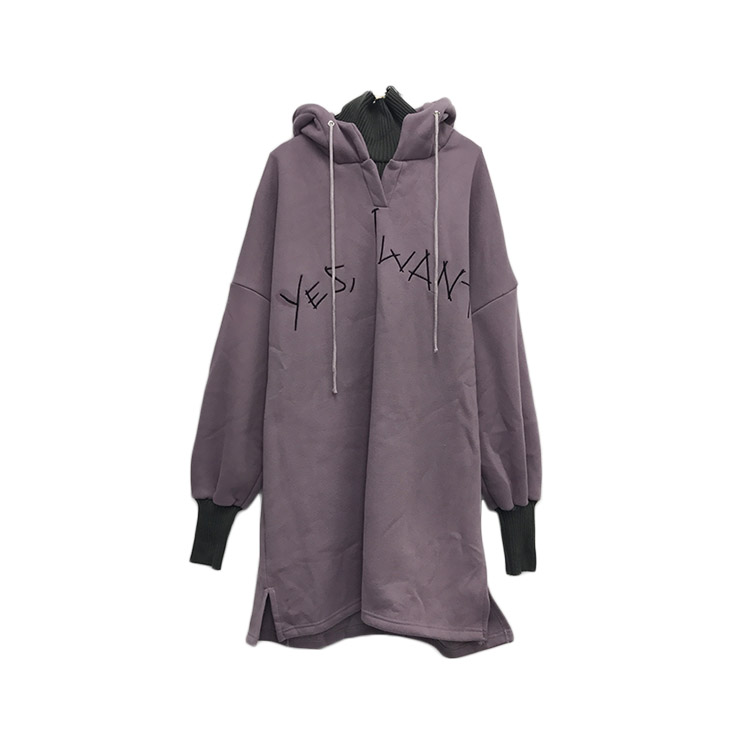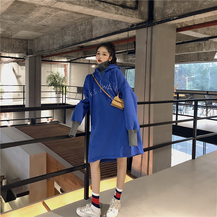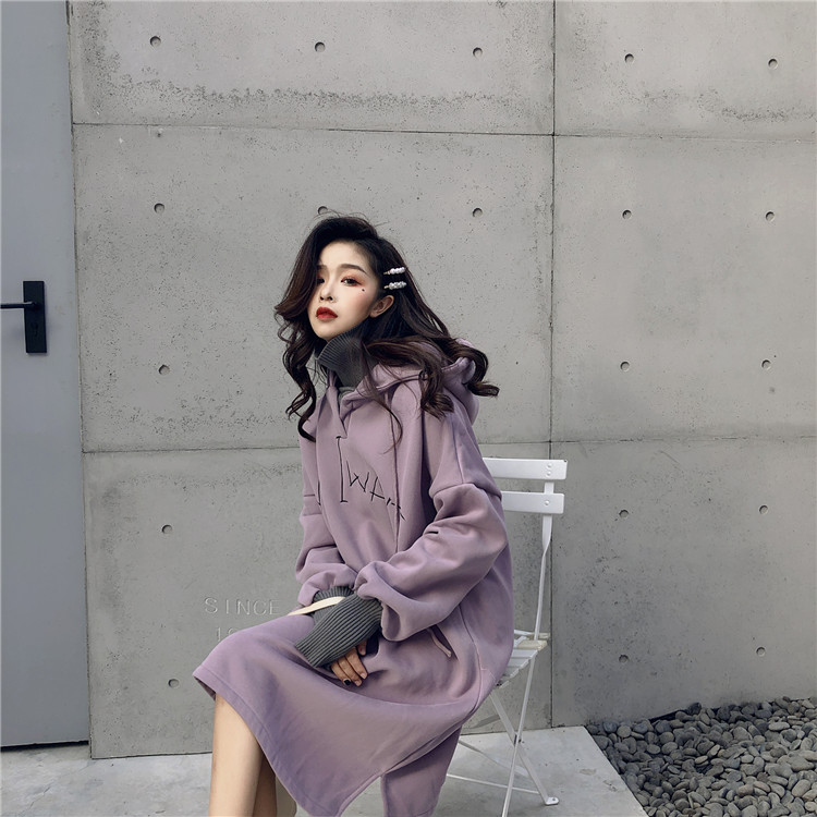 衛衣2018新款女長袖韓版寬松顯瘦oversize印花半高領慵懶長款裙子
