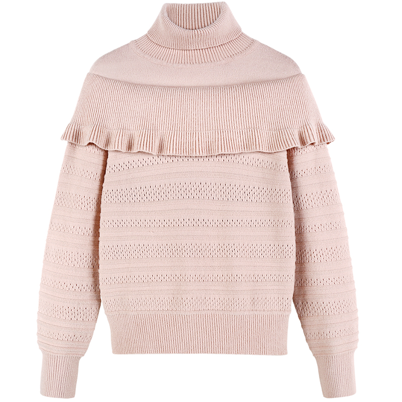MG小象高領毛針織衫女2018新款甜美荷葉邊套頭上衣學生冬季毛衣潮